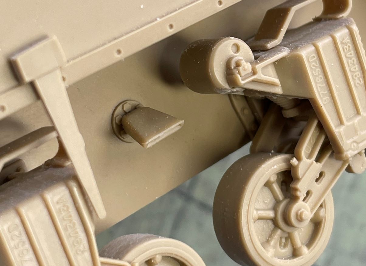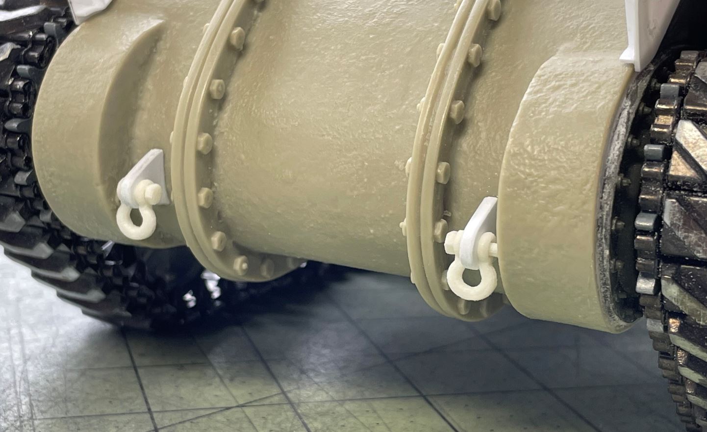 Shapeways Sherman hooks are installed on the plastic mounts at the front.
