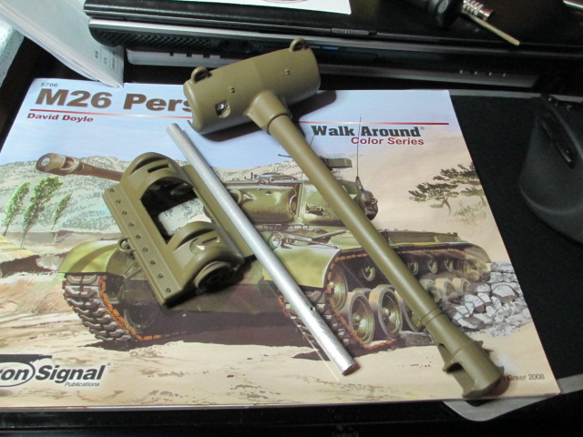 Thank you very much. I've always loved the Pershing and thought Heng Long did a pretty good job with it in terms of general appearance and upgrades from their Tiger 1. Today was one of those weekend catch up days so I contented myself tonight with disassembling the turret and collecting the Tamiya mantlet and trunnion bits to see how much of a stretch it would be to replace the HL parts. I'm not completely sure but after a little grinding o' the mental gears and dry fitment of parts, I think it can be done reasonably simply. Pictures: