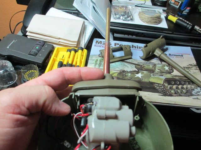 I don't know why I try to sort these tanks into categories such as 'Cosmetic Redo' or 'Rebuild' They all seem to turn into a 'Rebuild' The Hobby is advancing so fast that any older tank you have that you want to put a bit of a polish on invariably turns into ordering major components either because you have discovered something is broken when you open it up or the new stuff available is so exciting and cool that you _have_to have it on your tank. This Pershing would have puttered along for many more years as it was until something drastic broke like the hardwired MFU. At least by doing this now, I was able to keep much of the original tank ( which has great sentimental value to me ) and ensure that it is up to modern standards of use and durability. I have located and fixed many of the older shortcomings that HL has corrected in their newer Pershings as well as beginning to build this one into a combination Tamiya\HL\Scratch M26 that I would be proud to set down in the middle of any Club gathering. Thank you, Sir, for coming to have a look at the ongoing work. ;o)