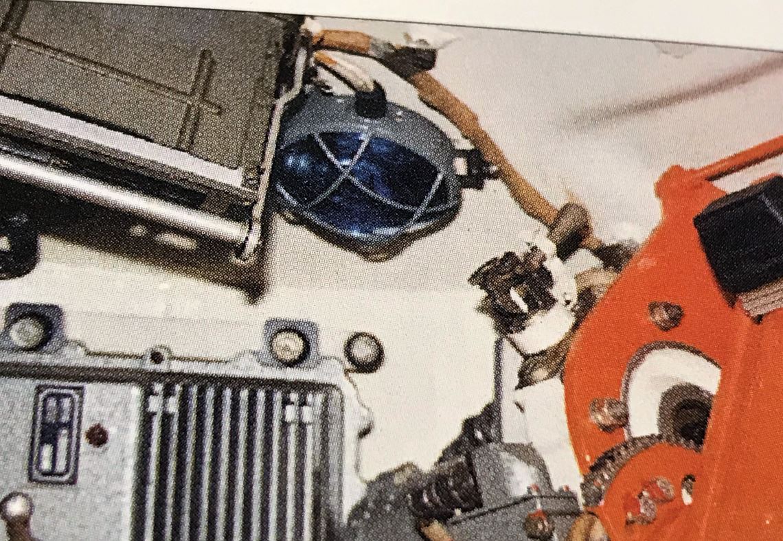 I had to make the spring on the front wheel shock absorber pretty strong. Other than the gearbox, the rest of the equipment is light. The chassis is long so it helps balance the frontal area. But as you can see in the picture below, the real vehicle is a bit nose heavy itself and the length of the side skirts are not horizontal, the skirts have a light slope from the rear towards the front, which makes the model look more nose heavy depending on the angle of the camera.