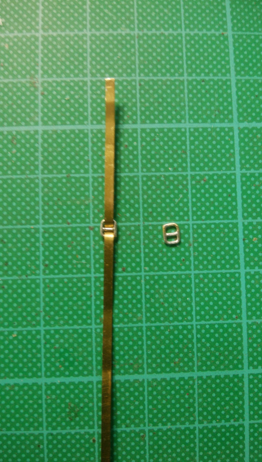 I bent the brass wire into a rectangle and soldered one brass wire across the center of the rectangle to make a buckle for the band. The band material can be anything that is strip-shaped and flexible, but I used a brass band plate this time. With this method, you can easily make the binding band and buckle in a shape that looks good, although it does not have a length adjustment function like the real one. If the belt material is more flexible, such as cloth or paper, this buckle can allow for length adjustment. A fixed band for jerry cans. I also put a band on the blanket and small arms.