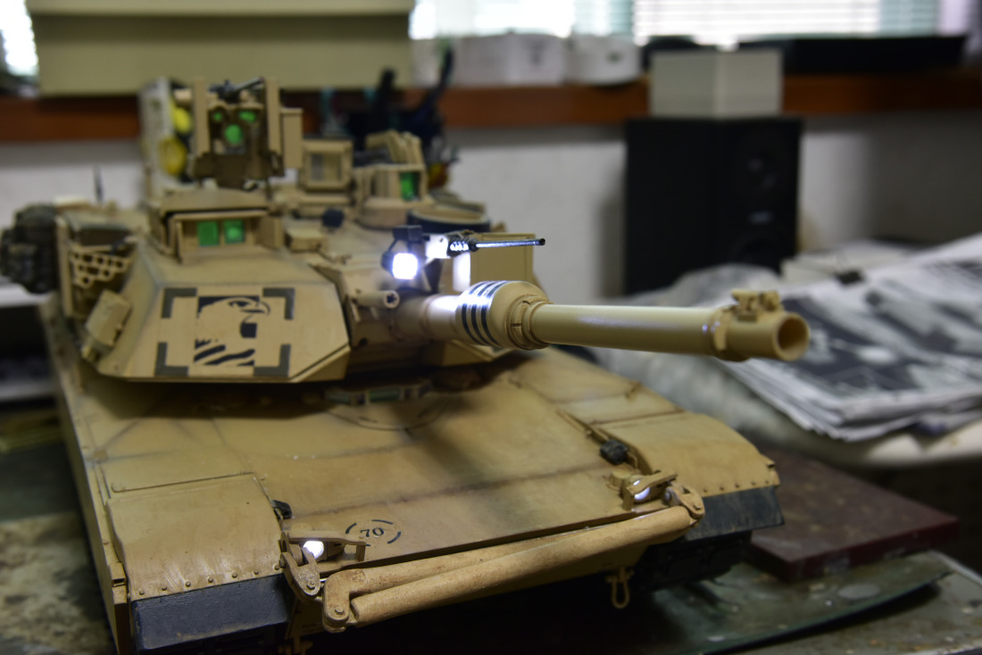 I installed the main switch of this M1A2 model under the blow-off panel of the turret like TAMIYA's full operation RC model.