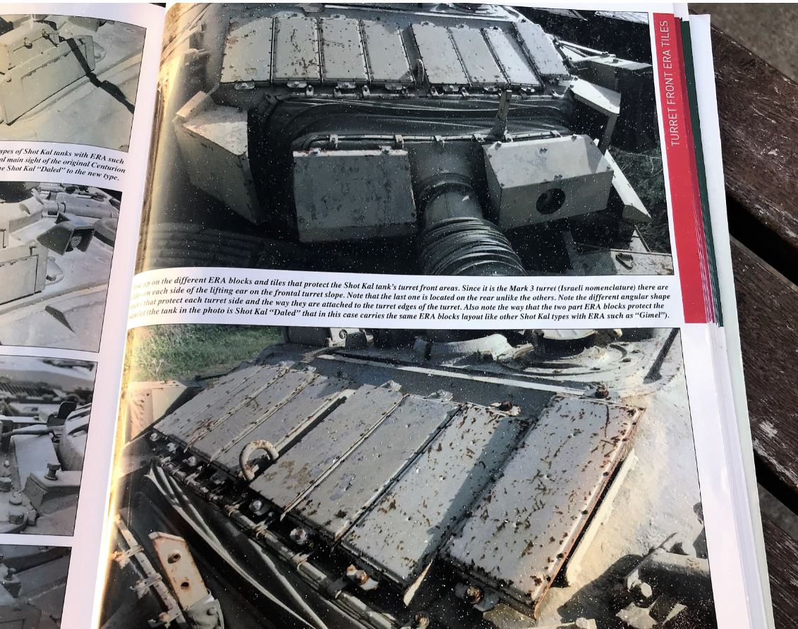 There are various Blazer arrangements for the Sho't Kal. Research is required in order to determine the configuration matching the base tank used (ie Mark 3, 5, 7...). Seen here are the side armor on top hull bins and under the turret storage bins, common to all.