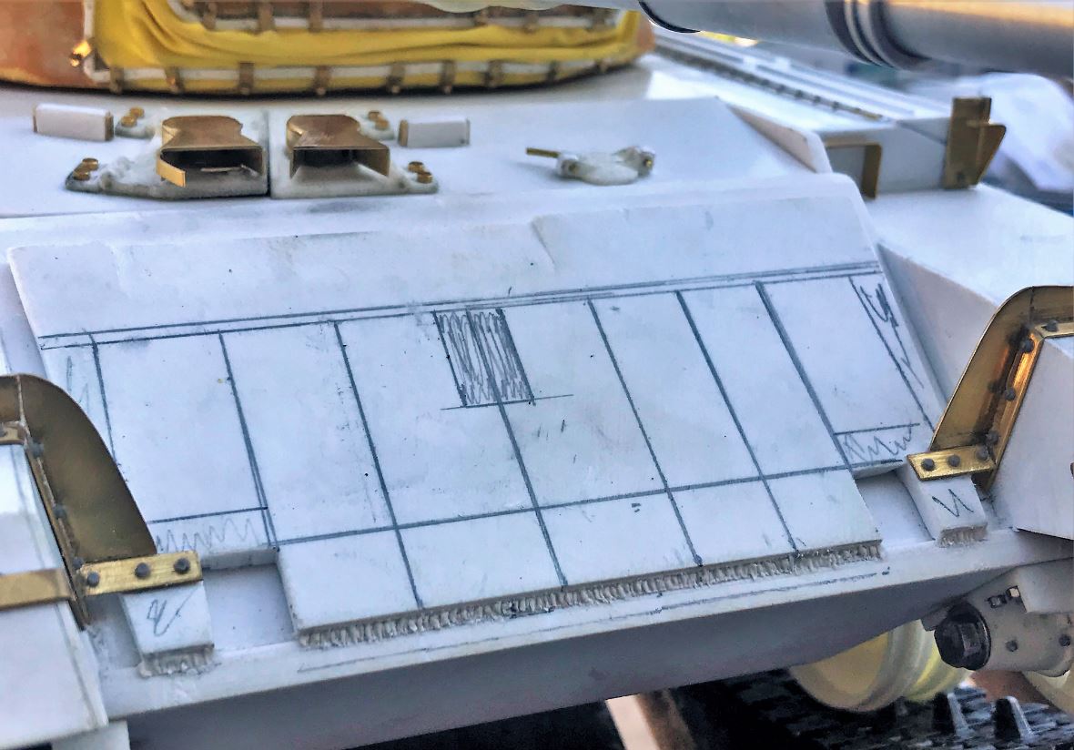 My Sho't Kal is based on a Mark 3 and I earlier gave it the supplemental armored plate on the glacis. Therefore, I need to install a sequential frontal ERA configuration.