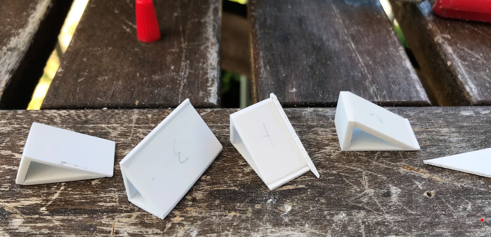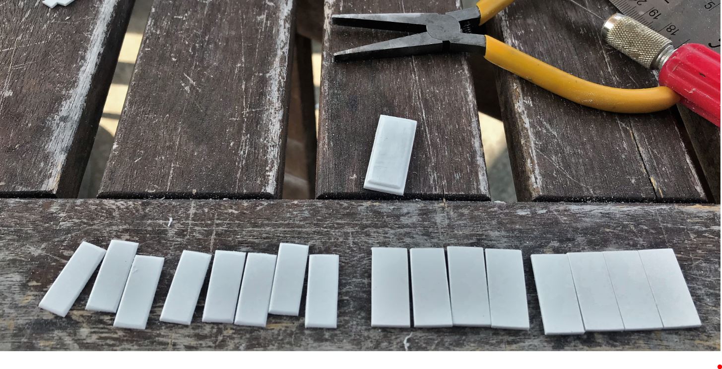 A total of 36 ERA blocks of various shapes and sizes need to be scratch built, mainly in 1mm plasticard and Meng SPS-009 0.8mm bolt heads . When blocks are of the same shape and next to one another on the tank, a standard assembly method must be used to ensure the blocks are exactly similar. It also speed up the process. Here I am preparing the Sequential blocks for the glacis.