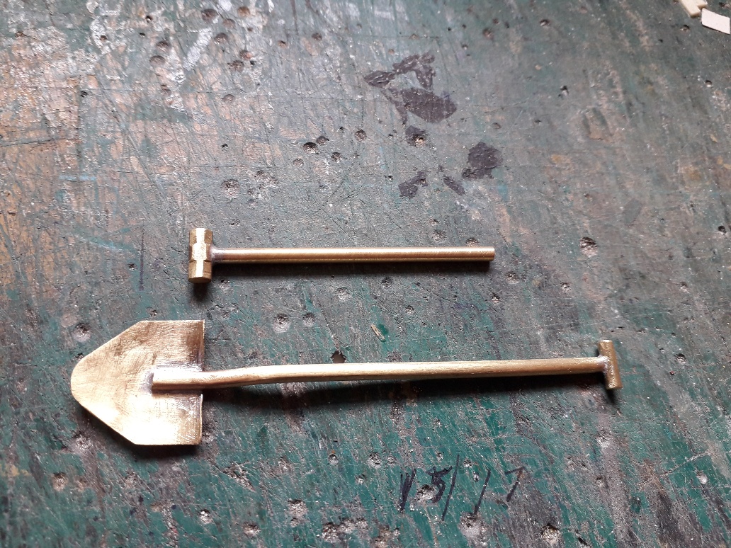 Decided to make some of the tools that are kept on the rear of the tank, so started with a shovel, from brass.