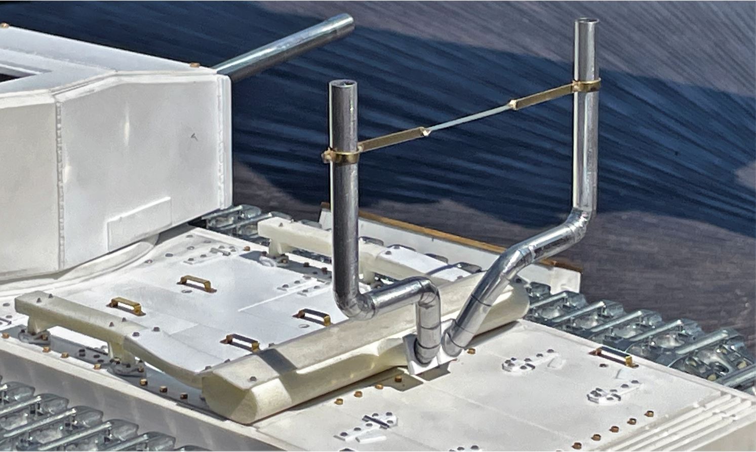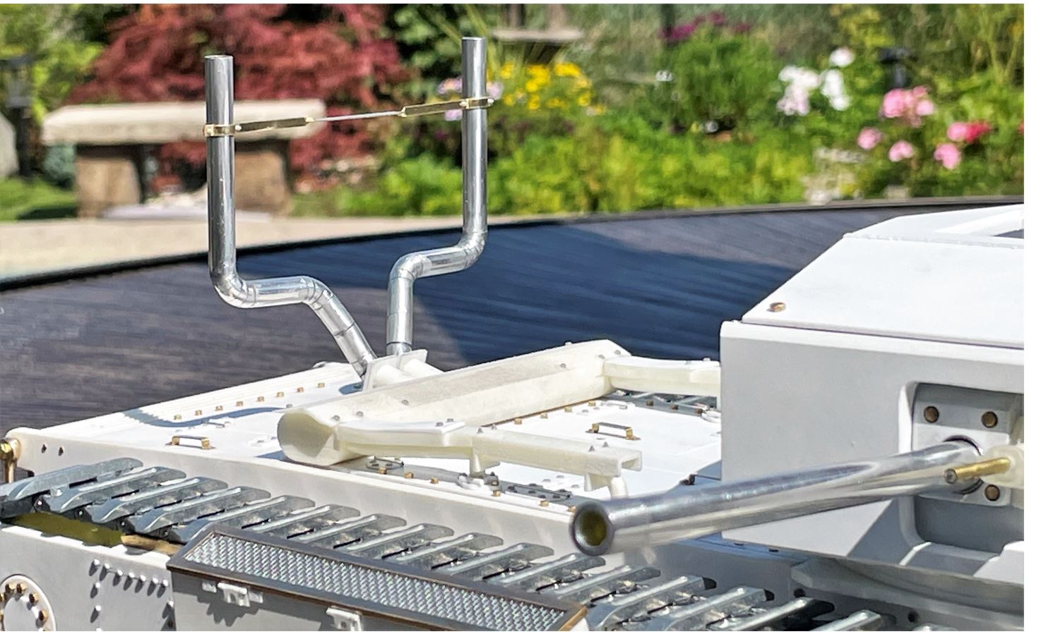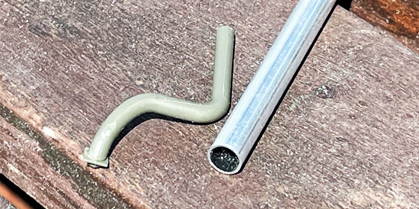 For the deep wading exhaust stack, a 6mm aluminum pipe is selected. I am using the AFV Club part as a model for dimensions and shapes.