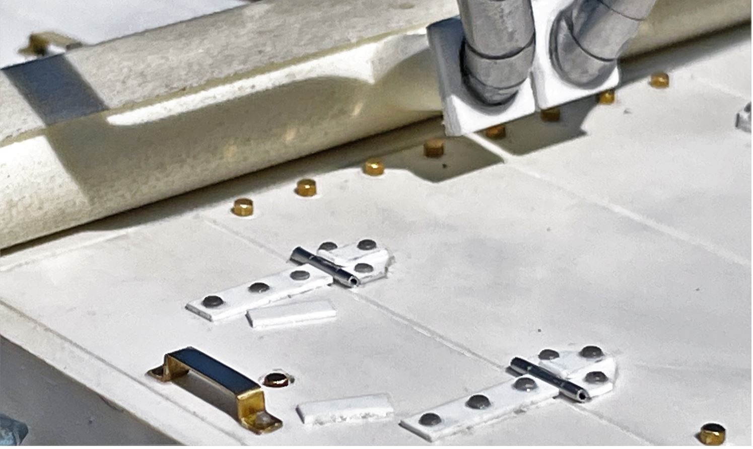 Hinges are assembled using superglue, careful not to get any glue near the working mechanism. Superglue can be made to resemble the welding.