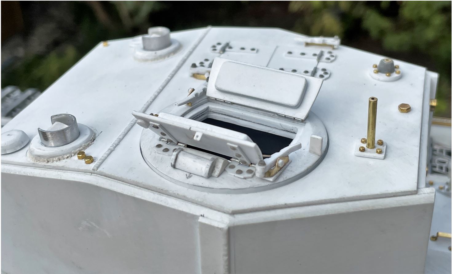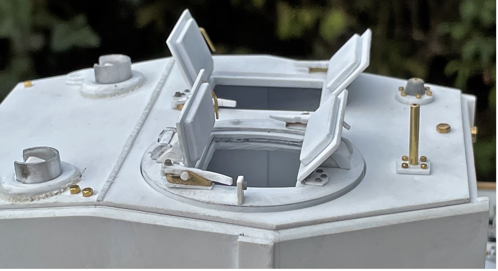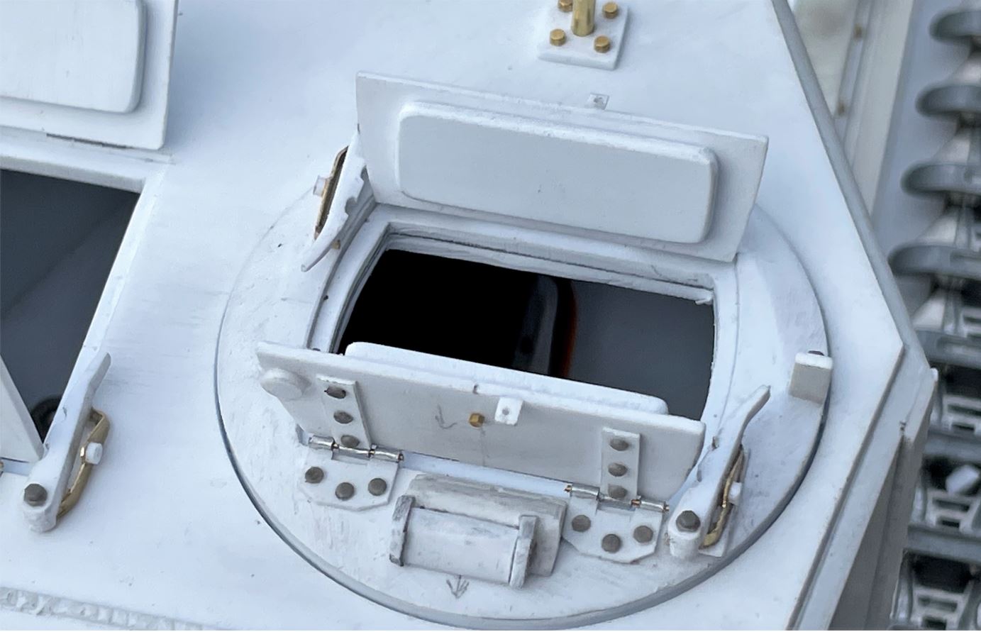 Hinges are installed on the gunner's hatch and commander's cupola.