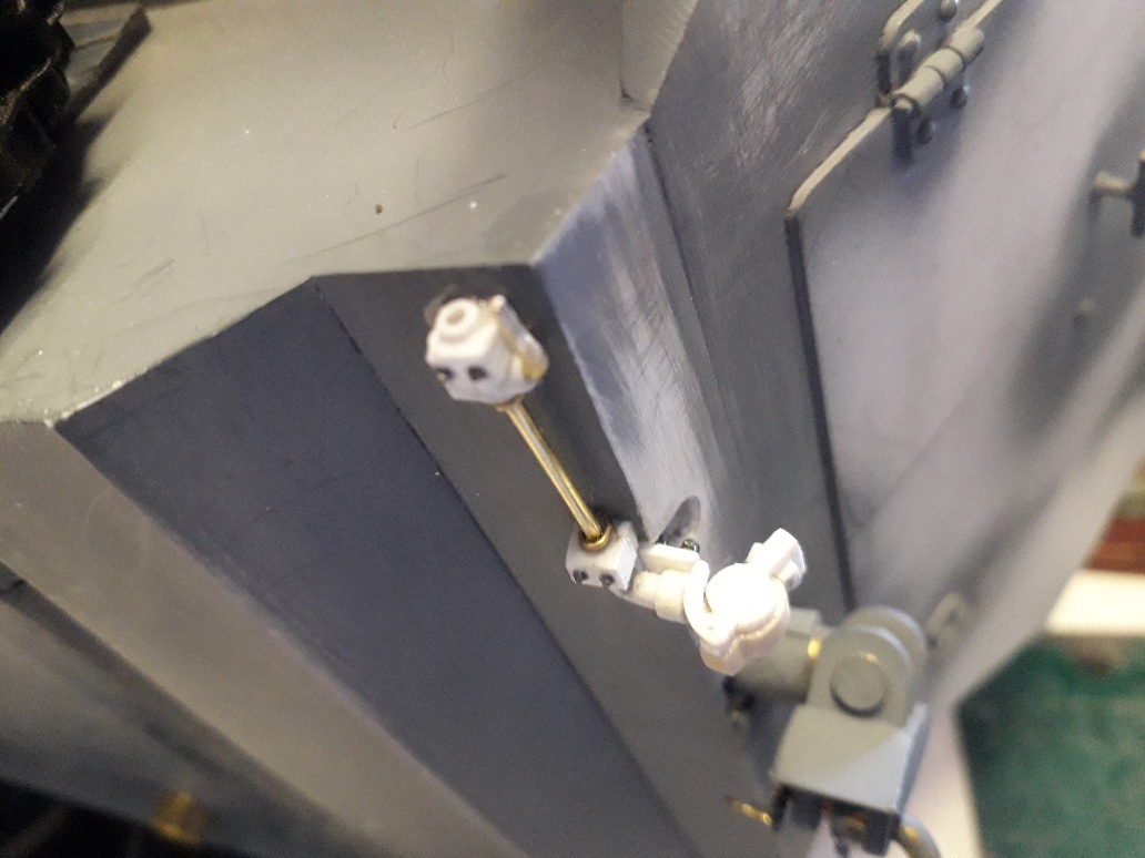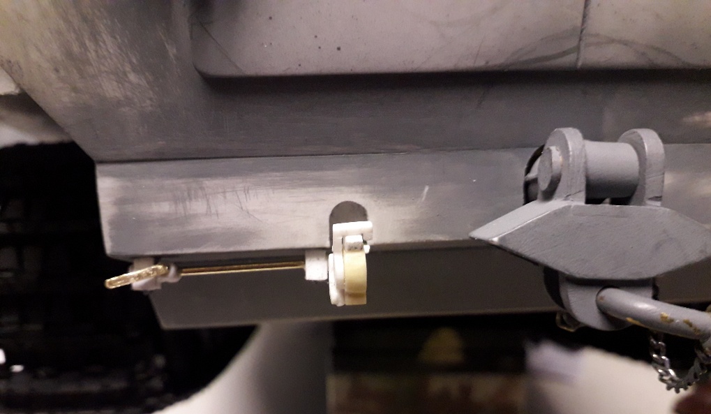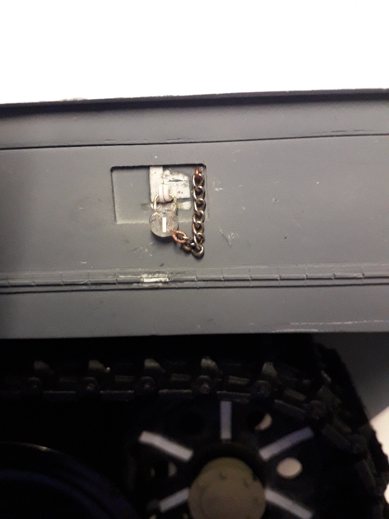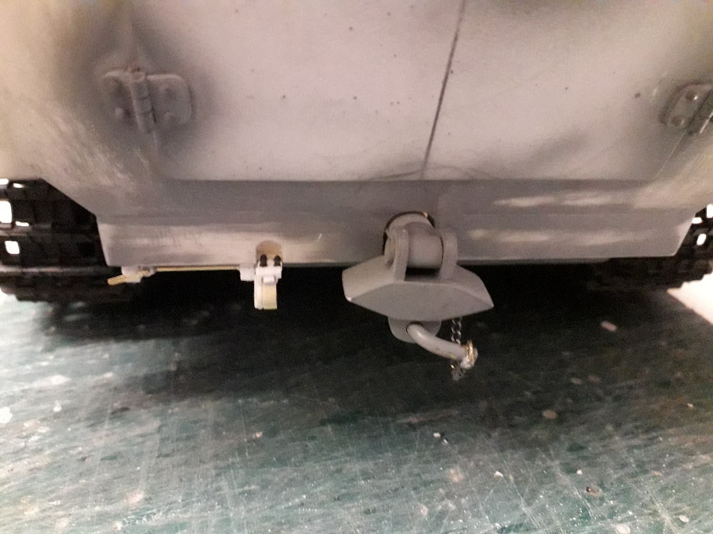 Pneumatic brake linkage now with mounting points and clasps and bolt heads fitted to rear and underside of the hull.