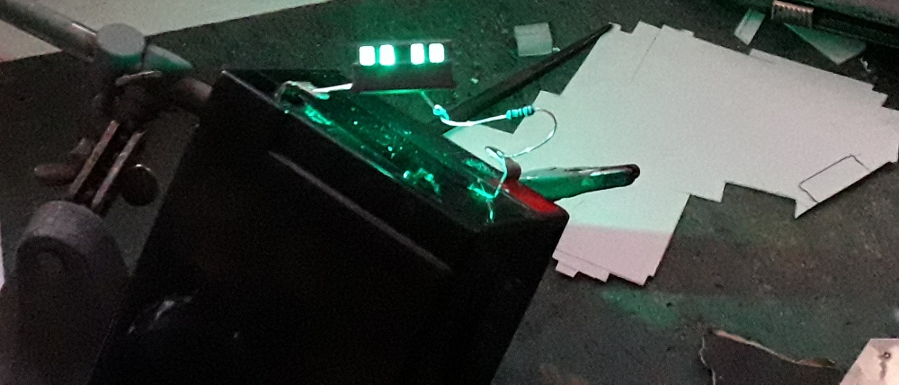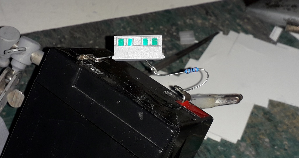 Made a Notek convoy light, has green led fitted, a couple of pics with it illuminated during daylight and at nightime, made from plasticard and with an acetate sheet lense sprayed green and a 3mm LED placed in the center of the unit.