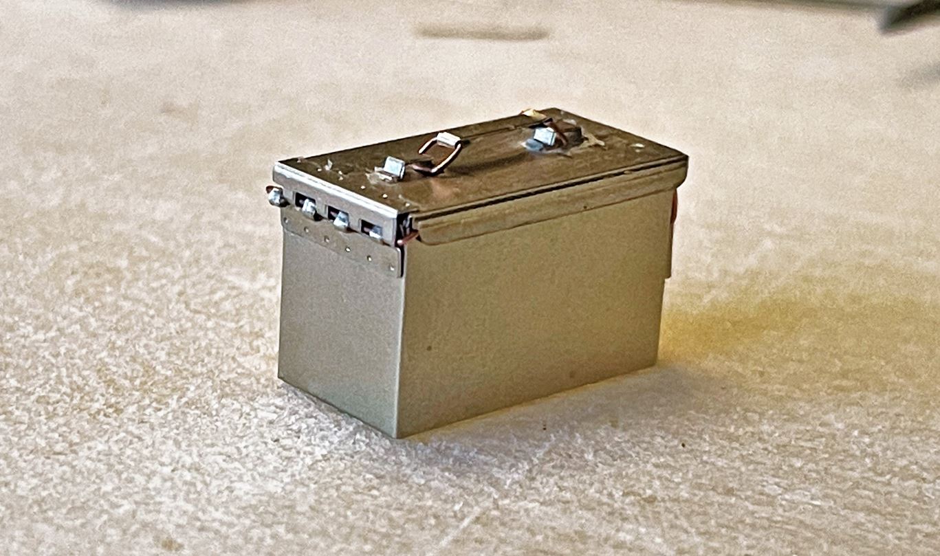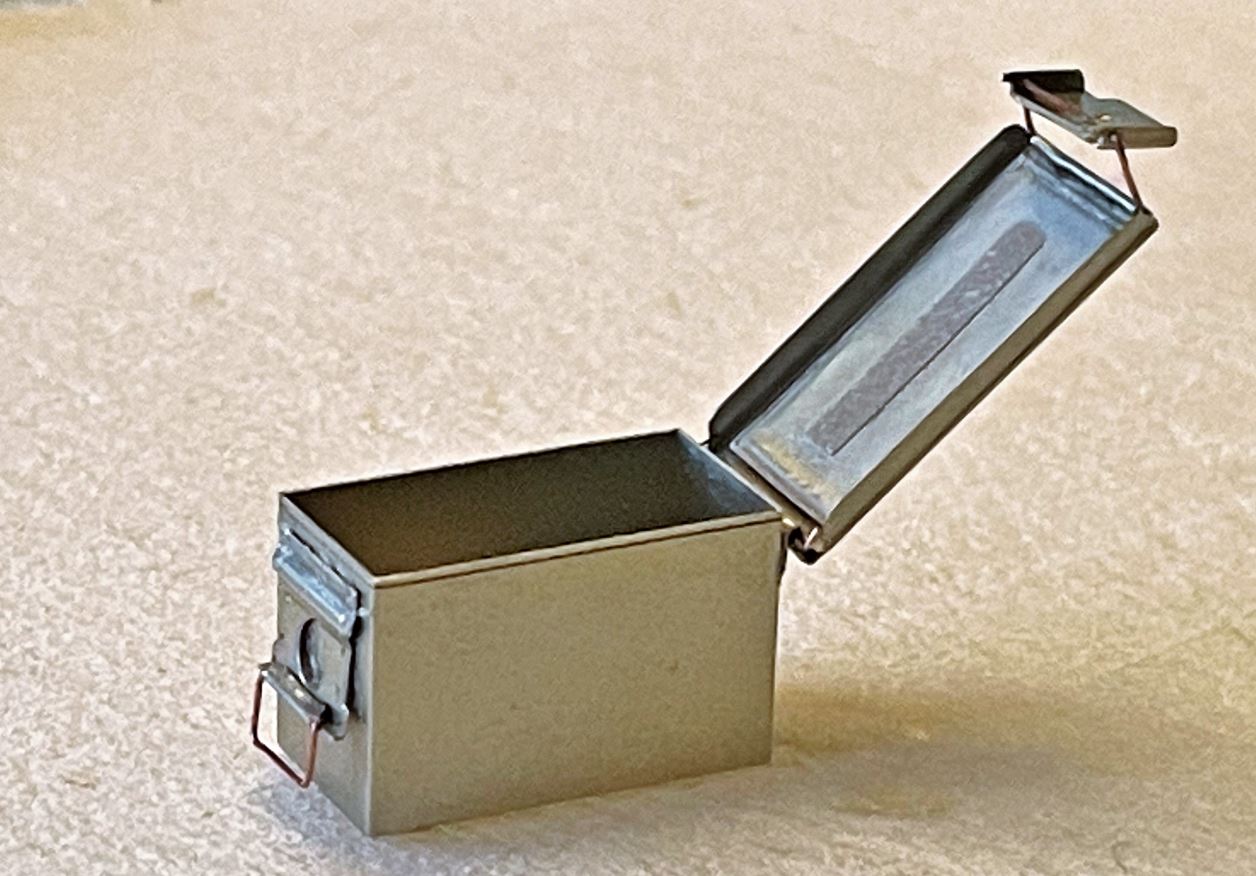 Its everything that has something to do with the 0.3mm wire that is a bit more difficult. But with patience, a few curses to blow some steam, and a cooler head, its doable. I think it will look good with the ammo belt and mounted on the M2 cradle. The ammo box lid actually opens, closes and the latch on the side really locks it, it's cool. First time i see this in 1/16. I usually used resin ammo boxes lately. I think i am converted already. Once you start using these Aber sets, there is no way back.