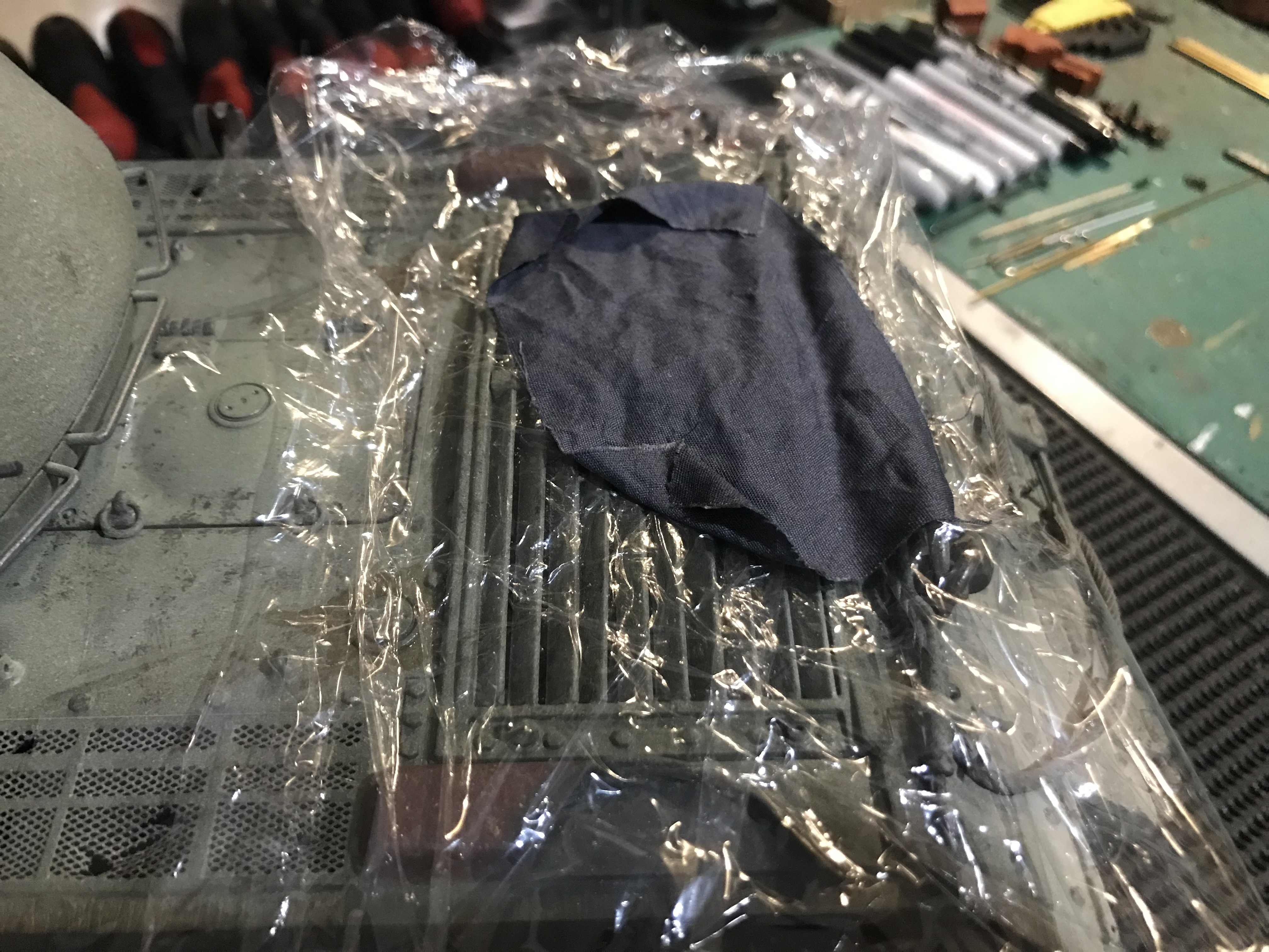 Covered the vent panel with a double layer of clingfilm, and laid a diluted PVA glue soaked bit of grey rag over it.