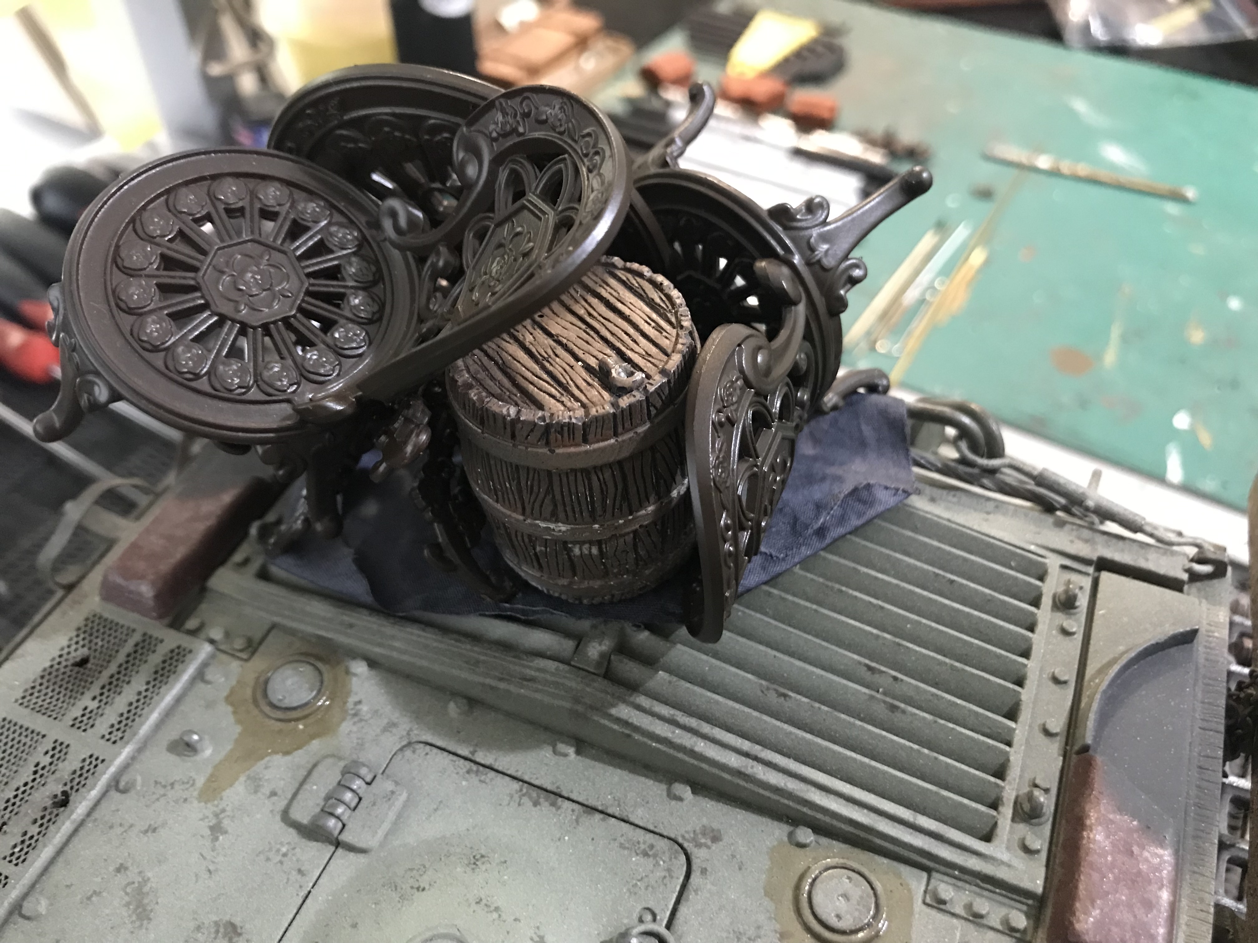 The bits of chair & table that touch the barrel are all carefully superglued to each other to help stay put!