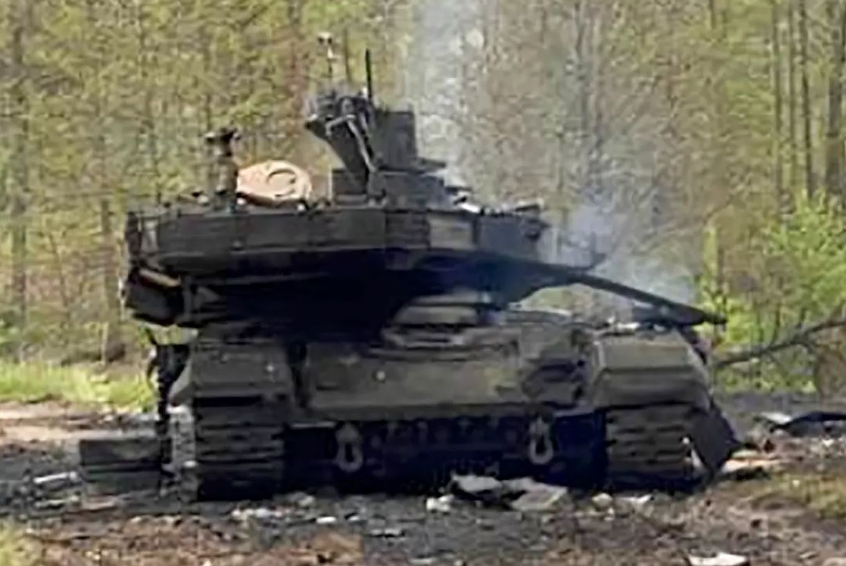 Shown here is a T-90M destroyed by the Ukrainians on the eastern front. Its unclear at this time what weapon destroyed it.