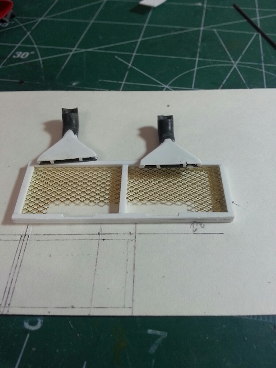 I have been plugging away on the exhaust and finishing up the the screen that also belongs under the rear hull. I hollowed out the pipes and the flange. I added plastic strip and then made covers. I then sanded them back into shape. I will have a functional smoke unit on this sherman.