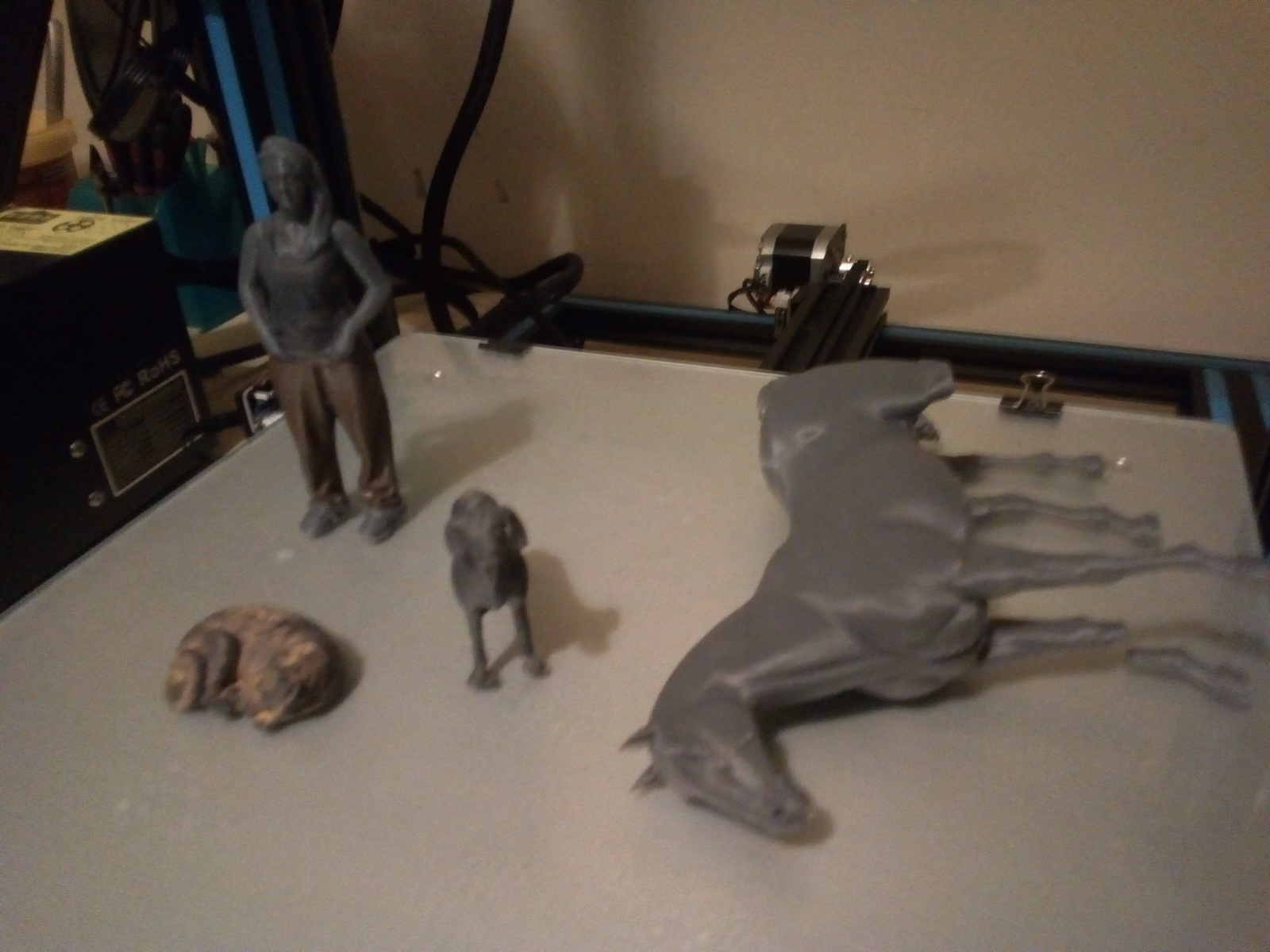 Found some more figures for scenery, the female and the dogs came out ok, but whoever designed the horse omitted to mention that it was a hollow model. The damned legs fell off while it was printing! I will glue them on, and hopefully it won't have as much of a limp!!