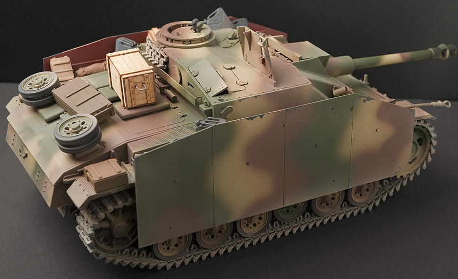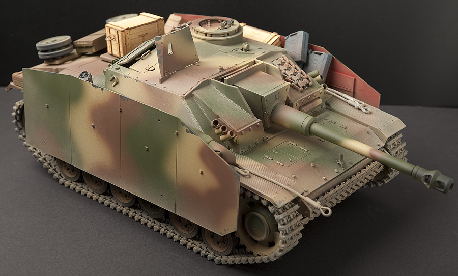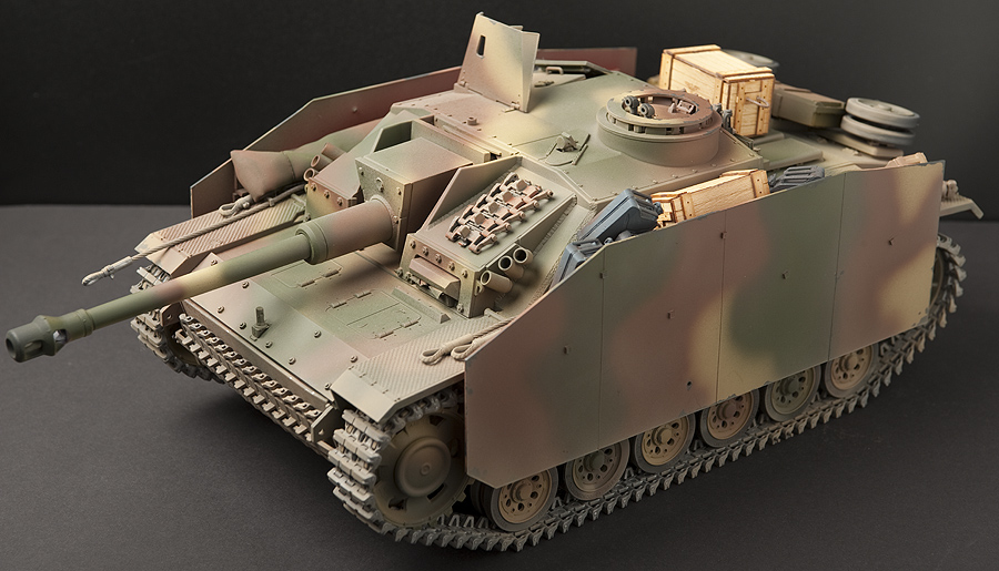 StuG III was purchased as upper hull and separate Asiatam chassis, wheels and metal track. Electronics added separately and same finishing as the Jagdpanther.