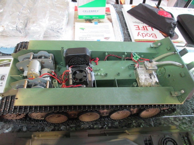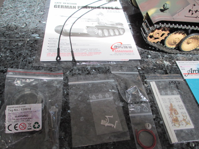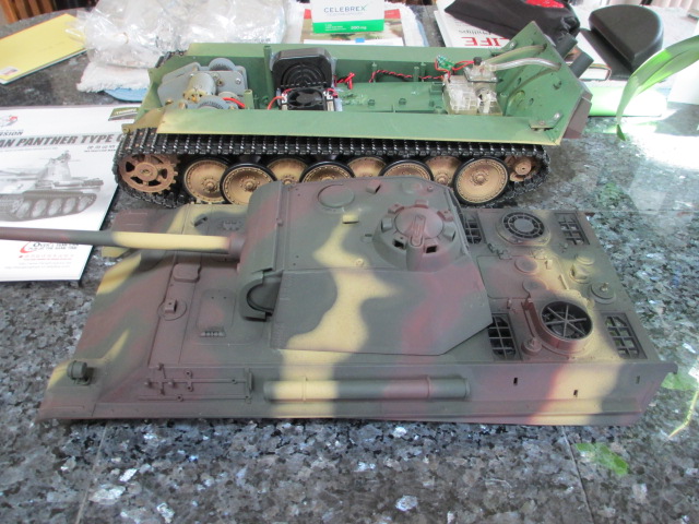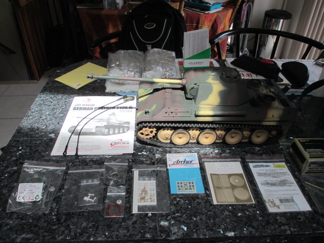 Finally everything has arrived and I have a quiet Sunday to begin work. This Panther has minimal metal add-ons, (Main Gun barrel, some grills, Intermediate quality metal gearbox and the odd tool and clamp) so the hull won't have to be completely dissasembled for suspension work to take place. The sound on this Taigen tank is good, the gun is a strong shooter and it has a proportional smoker and excellent led lighting already installed. so only cosmetic add-ons and modeling will be done to get it to my level of run and show.