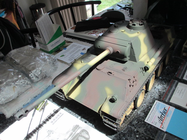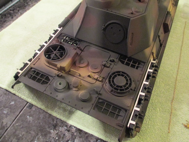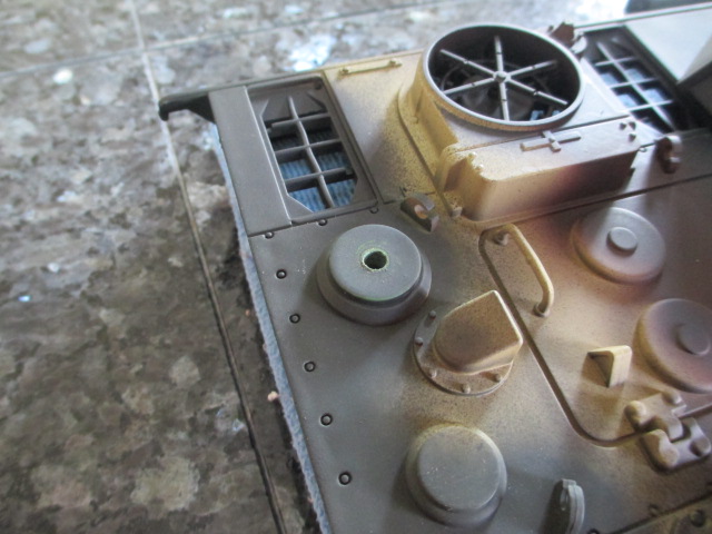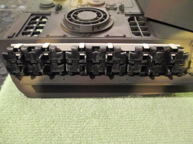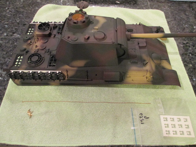 Just a thought here, as the Panther had been airbrushed it could be a good idea to sand the area you are going to glue the track hangers to back to the plastic. I found when I built my Heng Long tiger I thought the grey was the plastic which it wasn't it was paint, so the bits I glued fell off. Not until I sanded the paint back to the plastic it all held good.