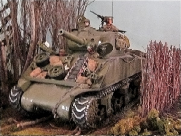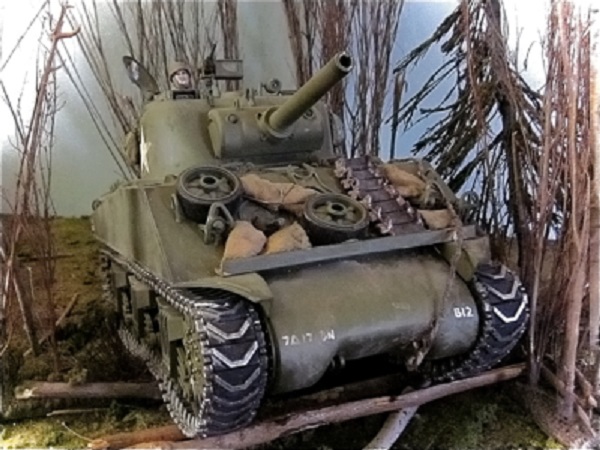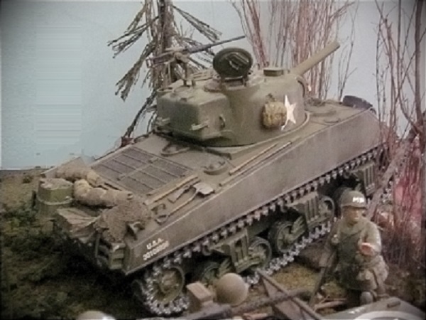 I have an eye for 105mm Shermans. Yours is definitely an attention getter. The beautifully done diorama base suits it to a 'T'.
