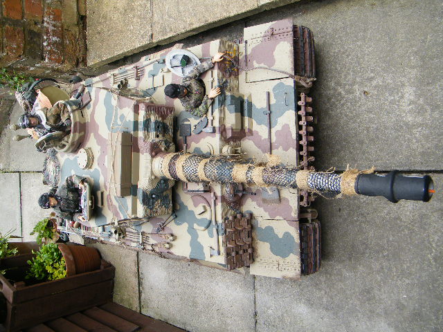 its nice to know that my model is still around,...prior to getting this model,i was a bit sceptical about a "Plastic" tank.....but after getting it, i was blown away by how strong it was,and those motors are the biz,..this model had an old Mark-1 sound module in it when i got it,..i replaced this piece of junk with the Tamiya Full option pack and the Electronize speed controllers,..what i should say is, i bought the Tamiya sound mods and the speed controllers, and a good friend of mine fitted them...the only thing wrong with this model is the cast metal cupola,..its a thing of beauty but unfortunately its not for this model, its for the early production....this cupola and the loaders hatch cost in excess of 400 euro,s from a supplier in Germany,it was fitted to the model simply because a late cupola could,nt be found at the time,..the tracks ..i loved them..they may only be made of injected nylon..but...they are strong and the polycarbonate wheels are also very good,....look forward to seeing it again in its new colours....and ..if you ever decide to sell it, i,d be very interested in having it....back.....