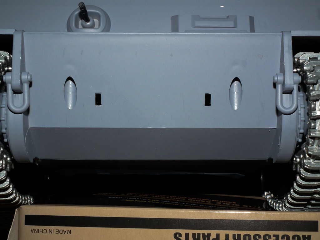 The hull has had metal bracing for the suspension, but please note that due to the new position of the screw mounts this is now a 2 piece unit & not just a single strip. Also the road wheels are now an allen screw fitting with just a painted "rubber" effect on the edges.