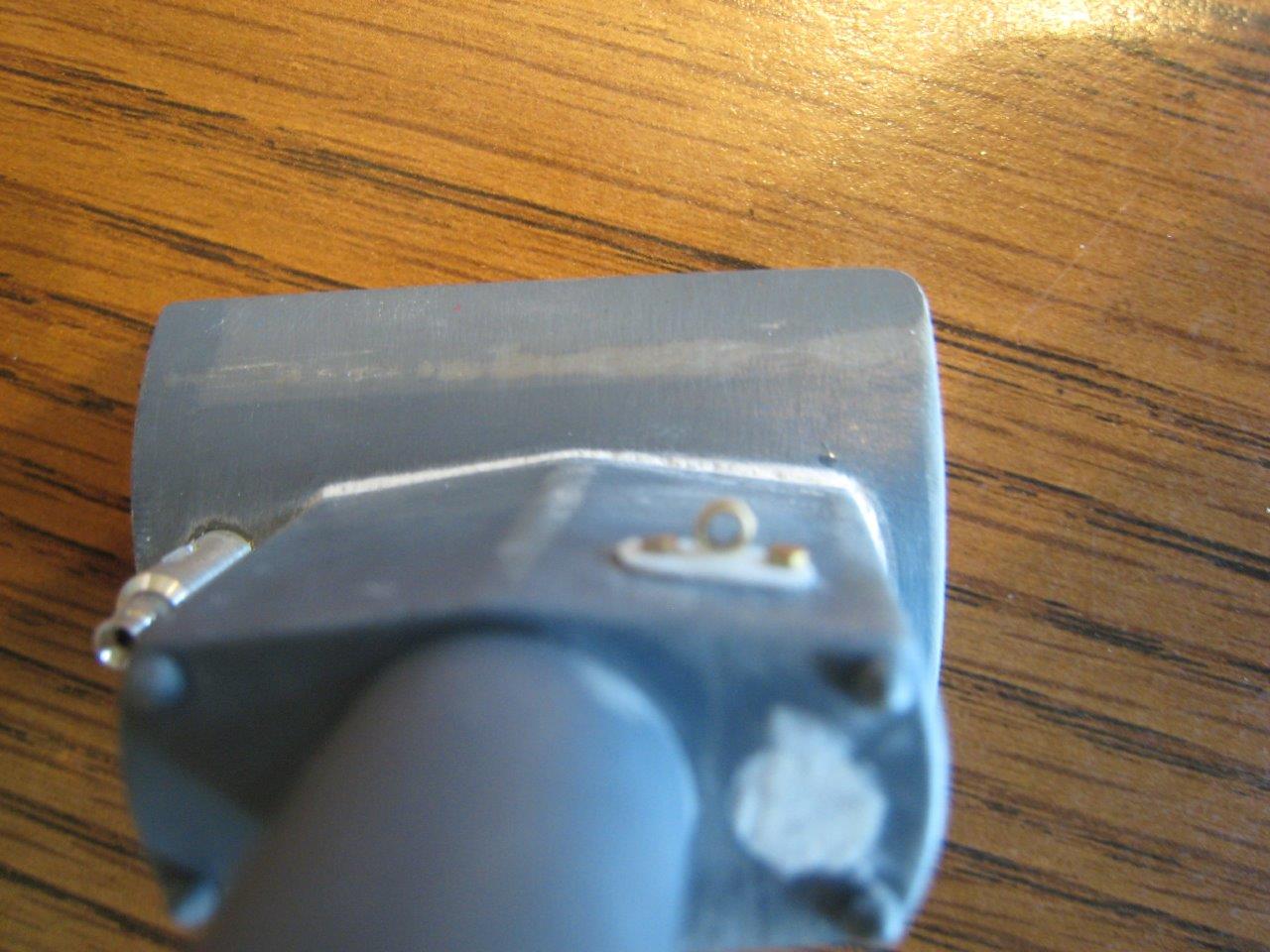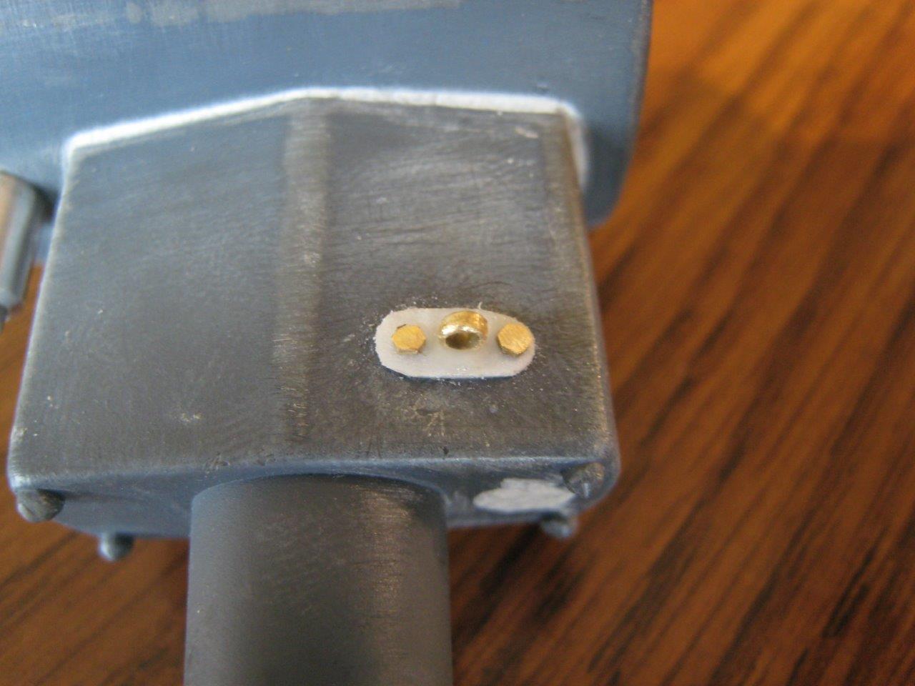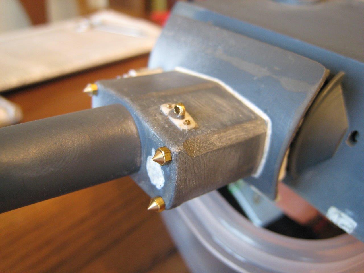 - Reworked the pointed cap nuts on the mantlet with 2-mm conical rivets with a 00-90 brass nut to recreate the effect. The rivet shaft fit right through the hole of the nut. Glued it all in place. Not an exact replica, but better than what was there.