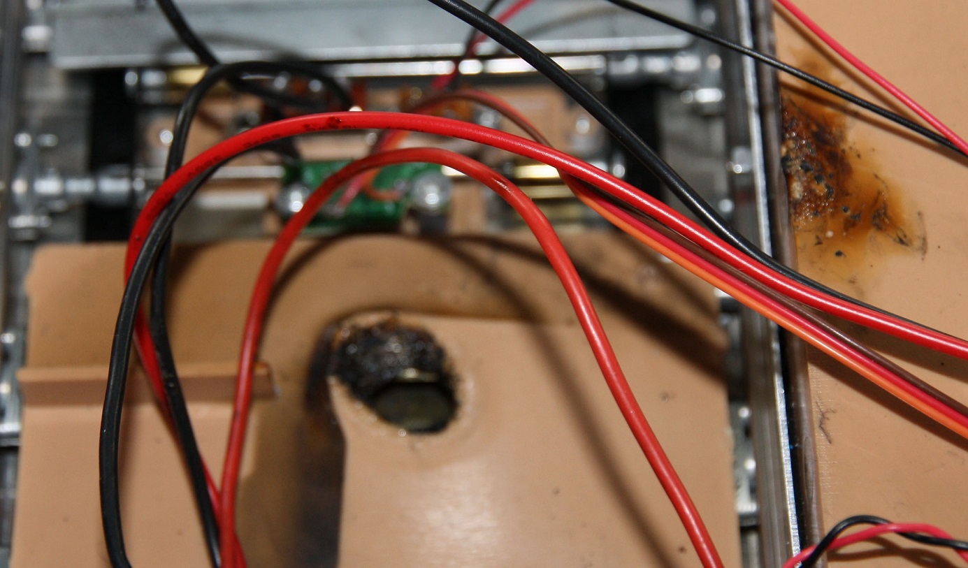 Luckily hull has quick release and there it was,smoke and flames coming out the board where binding cable plugs into it,and hole melted through