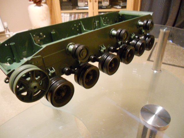Well, the other post war British tank that I have always liked the look (and sound) of, is the Chieftain. Fortunately, in the box of bits were a load of brand new Bulldog/Pershing road wheels. I took a look on Google Images and realised that these road wheels are more of a match for a Chieftain than a Centurion. The Centurion wheels almost touch, whereas the Chieftain's have a space between them.