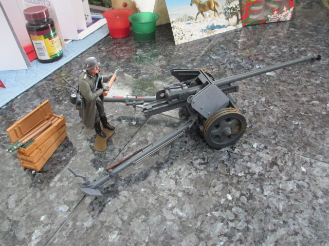 Good Morning! I hadn't really thought about it. It is a StG 44' ( or supposed to be ) that came with the figure. I set that fellow there as the Pak 40 and gunner don't take up a lot of space of the shelf. Once I get an RC truck or halftrack to pull the gun, I'll do a detail and weathering job on the gun and gunner and add that fellow in as well and correct his weapon. Lots and lots to do this year.