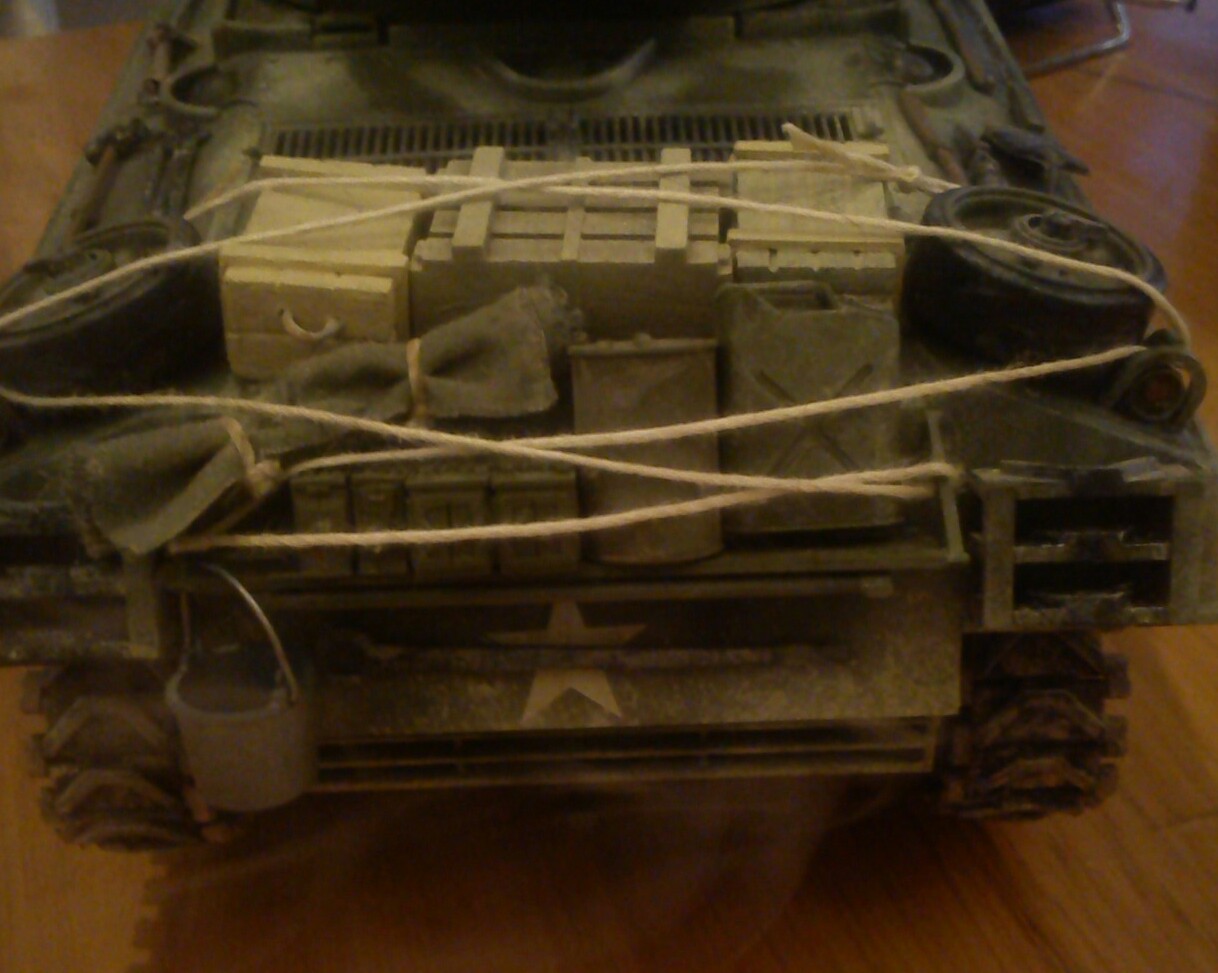 Looks really good! I got the HL Sherman from the missus at Christmas as my first RC and I'm looking at things like stowage at the moment. I'm still in the "daren't do anything that might ruin the expensive tank" stage so I'm not looking at weathering etc just yet but I really like the appearance you've created here.