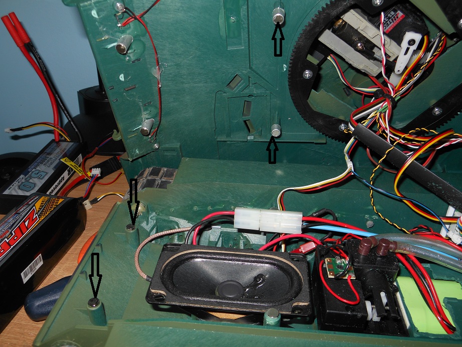 Trailbiker, almost all of the quick release are from the Taigen metal lower hull. They would use a metal lip for the front, and then two of the posts from the HL upper for the catch and the quick release mechanism is on the lower. I think four of the screws is usually sufficient enough to hold the upper and lower together as long as they are spread out evenly. I either have the Taigen lower, or use the rare earth magnet method. I use the thicker ones (3.22mm thick) and the 6.4mm size, which actually fits exactly onto the lower mounting post. For the upper I also use the same magnet, but I use a aluminium tube (7.14mm) which fits exactly over the mount post and allow you to put in another magnet like this: (You do have to shorten the upper post to account for the thickness of the two magnets).