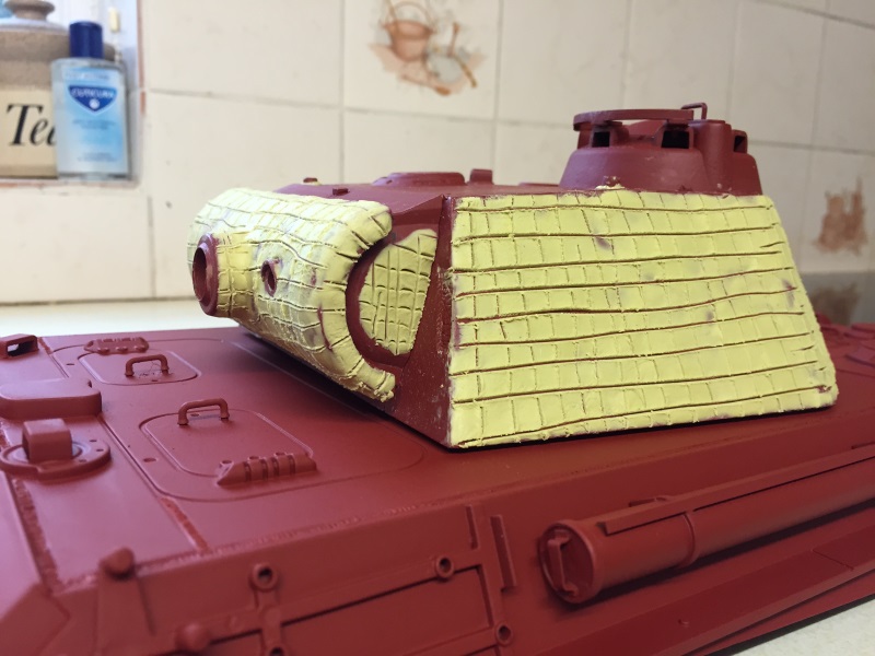Ive just completed adding the Zimmerit coating to mantlet and turret using standard Milliput.