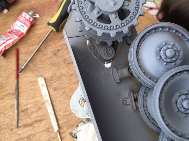 the other thing I noticed is the metal mantlet is about 1mm bigger all around, the chin fouls the hatches at the gun at 4 o'clock position, but the plastic one doesn't, might try and grind it back, or just use the plastic one!