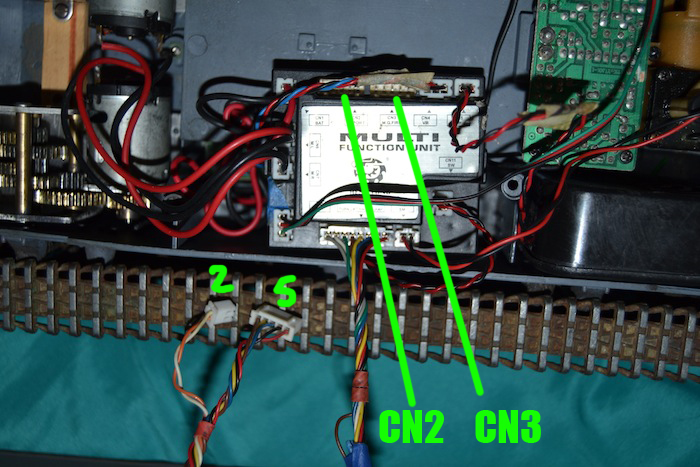 5 pin goes into CN2, the 2 pin gets jammed into the last two pins of CN3. If you are looking at the picture it would be the last two pins on the right end of CN3. Make sure the notch is facing in so one notch should catch with the CN3 base, and the other one just get jammed in there.