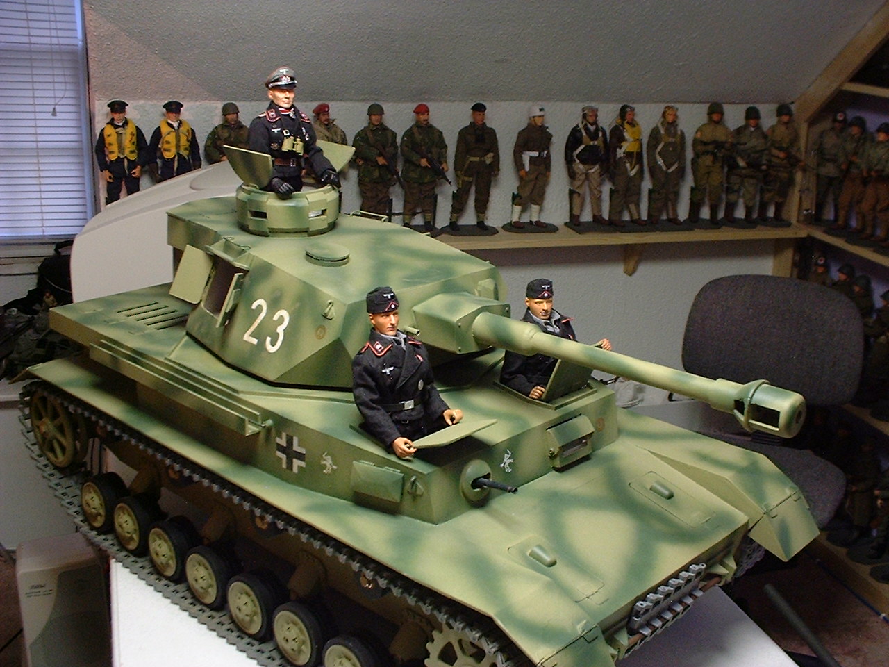 Most are in storage, but I have several dozen tankers and airmen displayed and a third of my 24'x24' garage being used as storage for the vehicles. I scratch built a MKIV Ausf G and a MarderIII Ausf H, as well as the crew compartment/nacelle of a FW189 Uhu.
