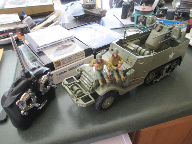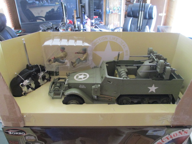 Post has been coming in lately with lots of tools for working on Mike's Tiger so it was pretty cool today to see something I had ordered for myself show up. Torro's newest version of the M16 anti-aircraft Halftrack is a treat for the eyes. Having said that, when I get around to this build, I should have super detail pieces available via one of Trumpeter's Halftrack kits in the same 1/16 scale. Video of Bob Held testing this vehicle can be found here: https://www.youtube.com/watch?v=Ss7BXjZQUR0 and Pics are here...