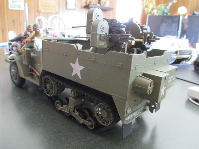 I really would like to have engine sound and some proper quad 50 firing. I have heard rumors of a card and chip that were made for this so will have to seek them out. As far as the movements, they seems better than what was reported earlier in the run with proportional creep and slow steering. Still gets up to a fair clip at full throttle so suspect that is not scaled.