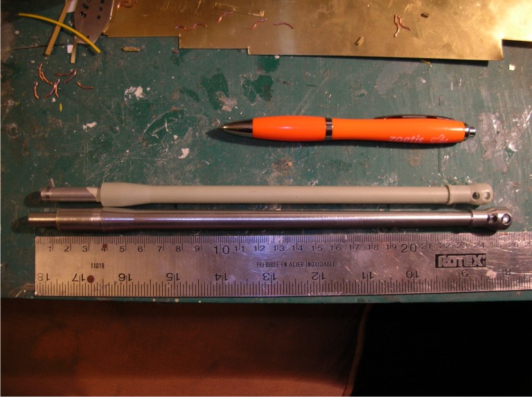 The supplied barrel is 204mm and the Mato BB barrel is 214. Now, a few mm's have to be hidden in the mantle so in fact the original barrel is closer to the right legnth unless you wish to hid more of the Mato barrel in the mantle. I should point out too that you will have to enlarge the hole in the mantlet to accomodate the Mato barrel. Also on our barrel we carried the right shape further toward the breech than the Mato barrel. Also the Mato barrel is a bit over scale in thickness and the muzzle break. Of course it has to have heft because it is designed to shoot the 6mm BB's. Basically all HL and Mato barrels are over scale for the BB's. I remember measuring up a Panther barrel for my L70 kit and it was way over scale.
