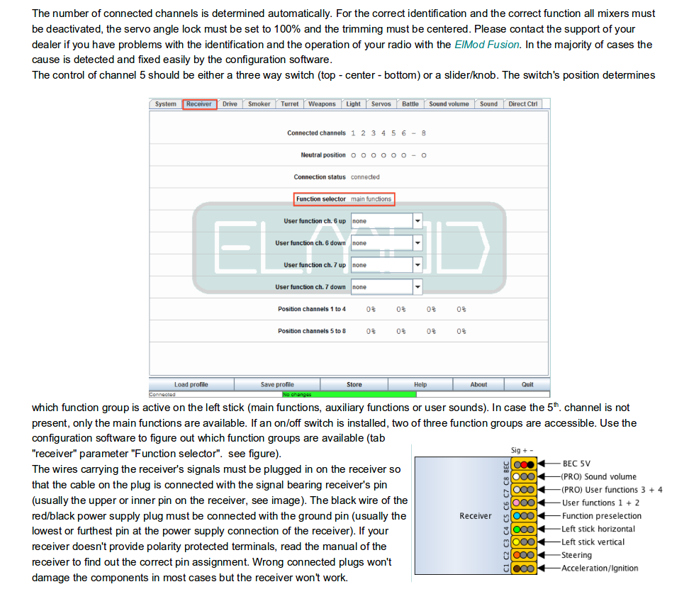 When using the Elmod configurator however i never see any change in the value for channel 5 (all other channels show changes when I move the sticks or switches).