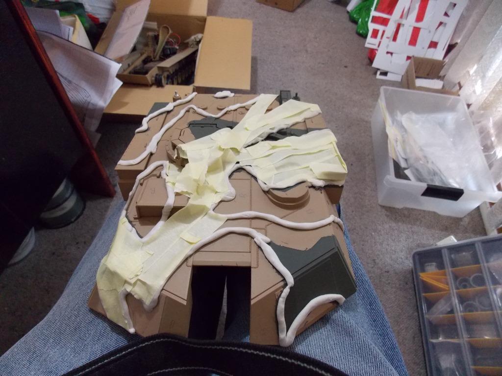Once I had it apart had a go at getting the airsoft unit to work but nothing appears to be happening I will order a new unit from Tankarmy when I order the roadwheels,etc. Having given up on the bb unit I started drawing all over the hull and turret with a lead pencil marking out the camo scheme, after about 3 hours drawing lines (and redoin em when I wasn't happy!!).