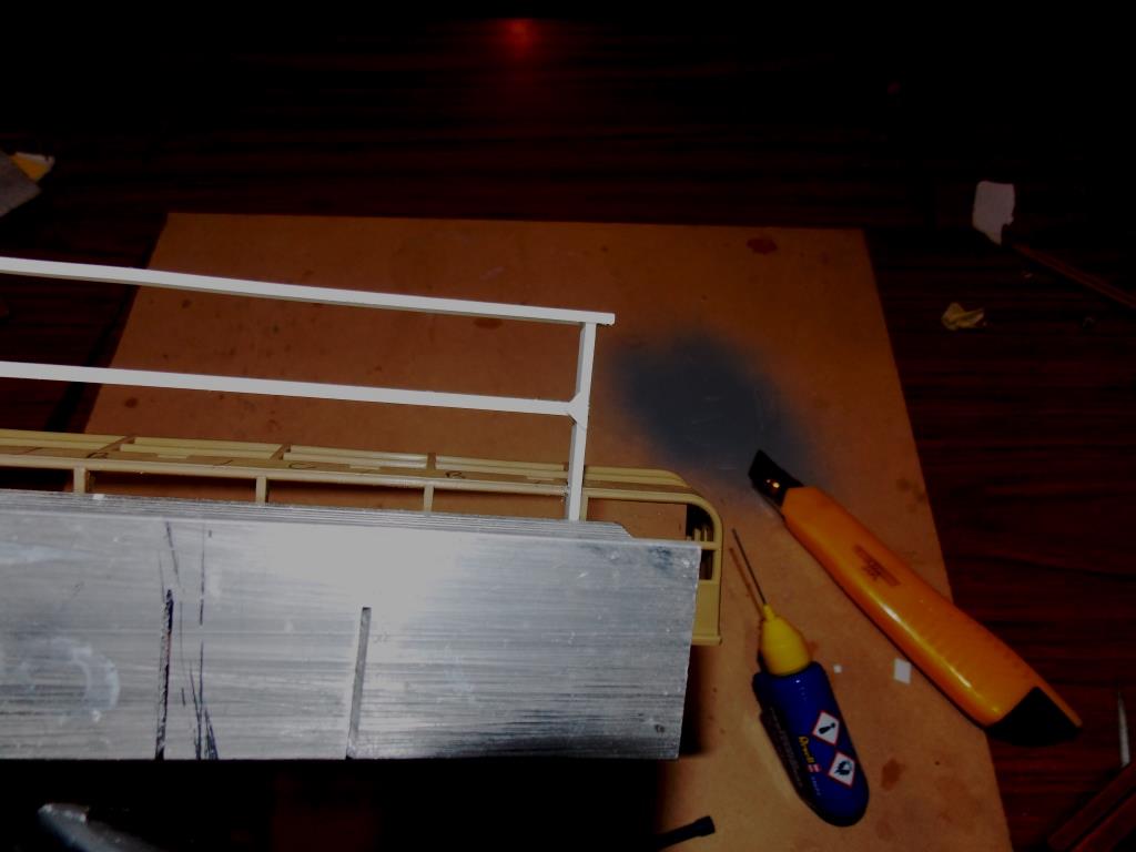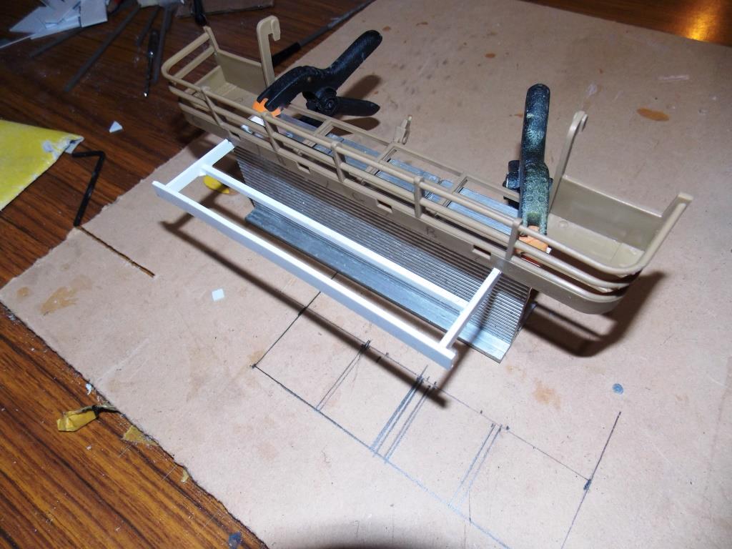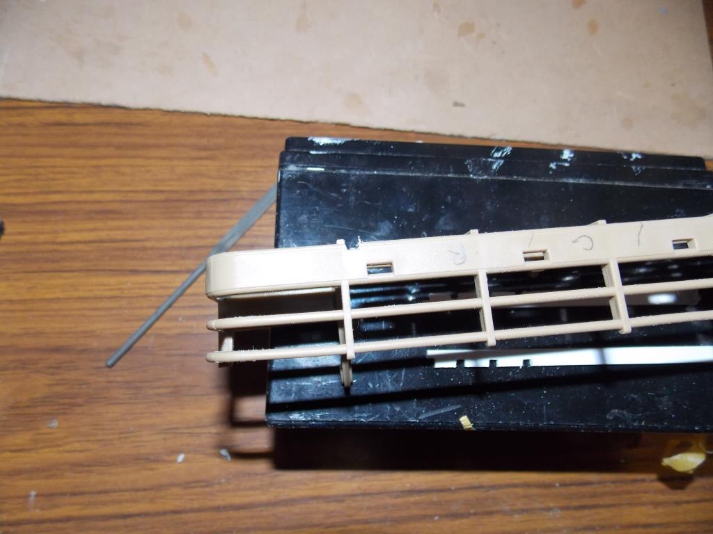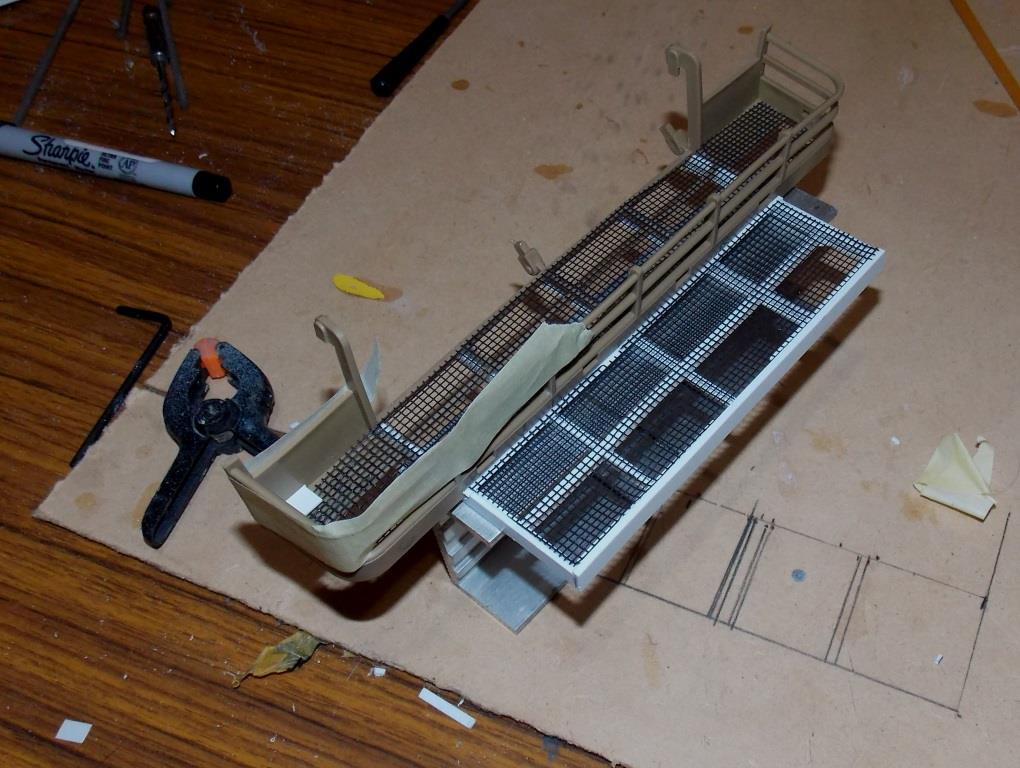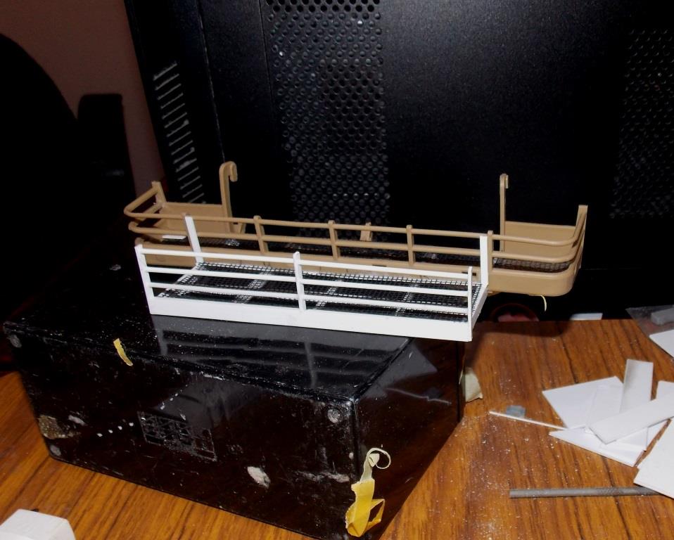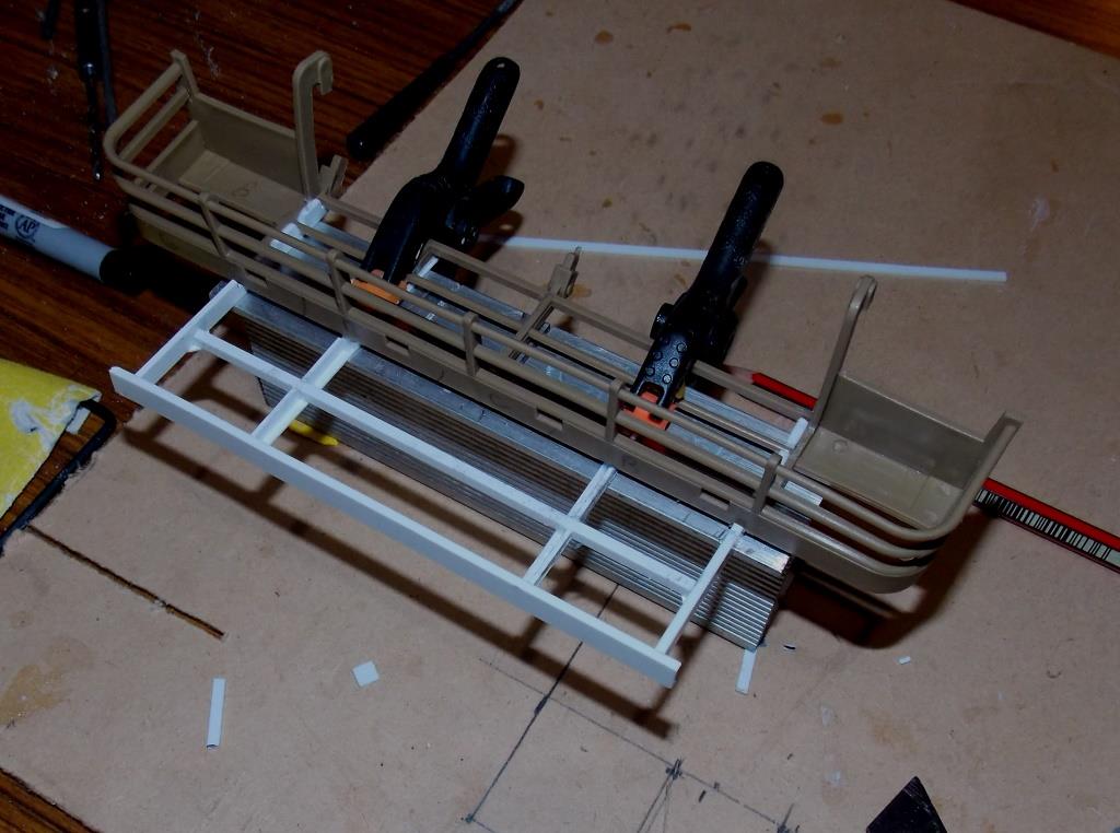 Made up the rear rack extension from some leftover evergreen styrene bits out of the scraps box, used some flyscreen mesh for the mesh. Hardest bit was finding enough rod the right size for doing the railing....