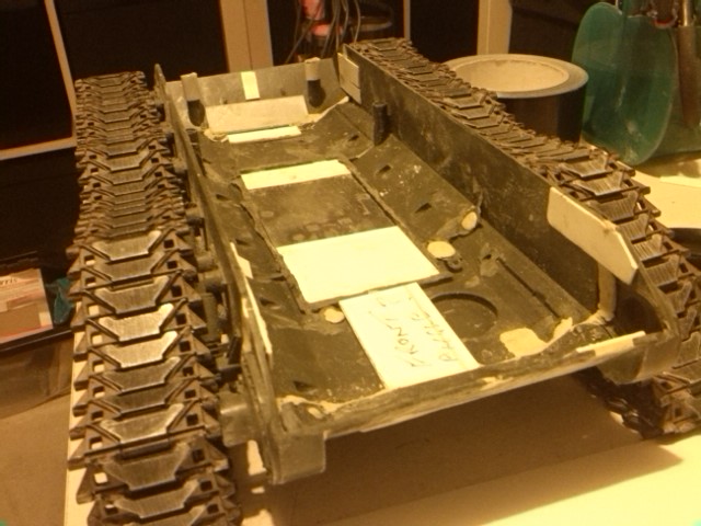 Very impressive. Would it have been possible to chop two sets of road wheels & reverse that section? I'm interested in the hull bracing too - any pics before you glue/fit the upper hull?