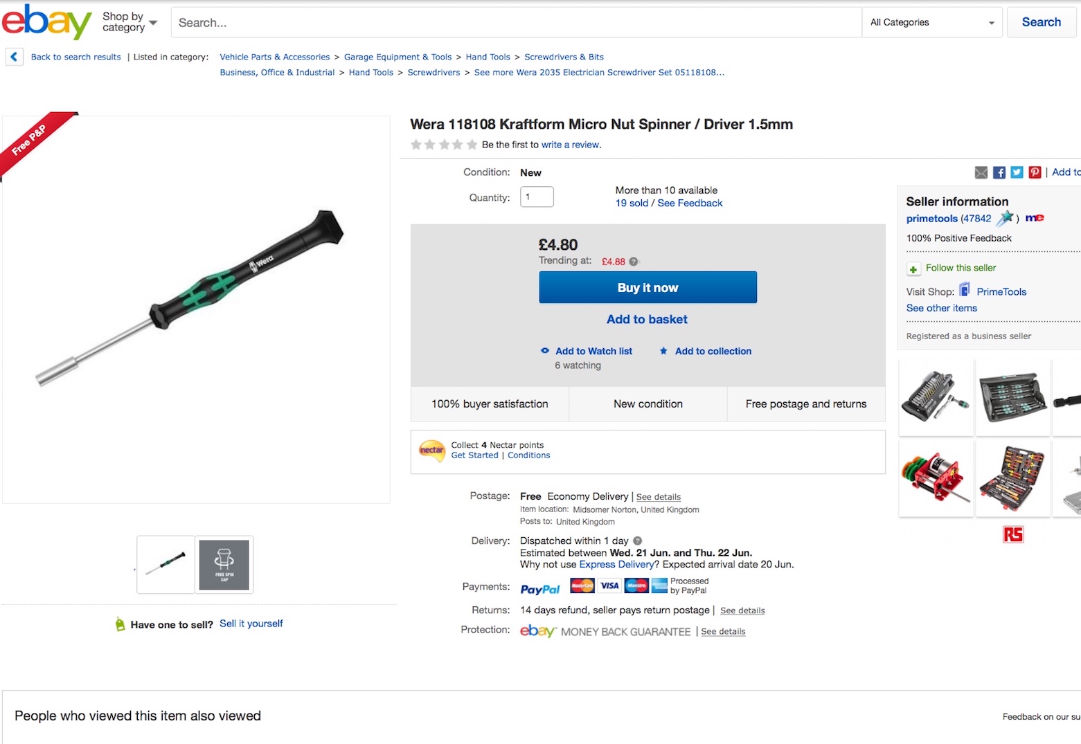 I needed a 1.6mm spanner or socket to drive some nuts and bolts,
