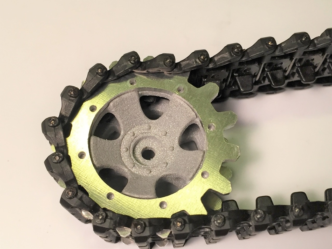 Also available from Ludwigs are the M113 sprocket (resin/metal) and Idler wheels (3d printed) for 33 and 20eu, these look very good and accurate. They fit the Heng Long Panzer III tracks. Ok, these are not exactly like the original T-130 tracks of the M113 but there is no other alternatives of that size.