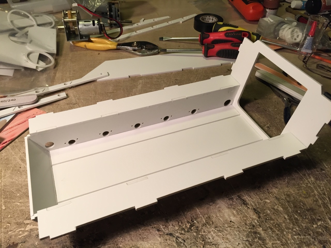After the initial step of separating all the parts from their plasticard sheets and their preparation, construction can start right away. The parts require limited preparation in comparison to resin kits, just need to cut the links to the sheet and sand them a bit. It is my first plasticard model and I must say it is quite pleasant. Parts are strait, strong and the interlocking mechanism ensures solid joints. However, this interlocking method will require a lot of putty and many sanding phases later on to ensure smooth surfaces everywhere, otherwise they will show and destroy the look of the model. Be aware that it is technically possible to put parts upside down or on the wrong side so plan and double check everything before gluing them.