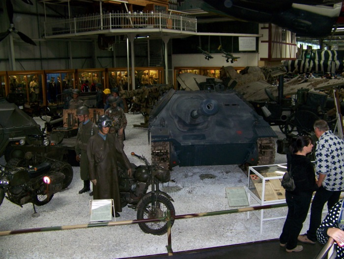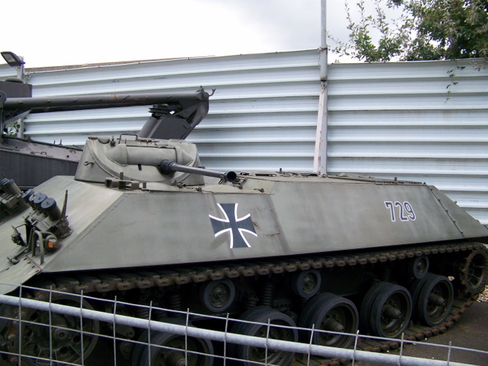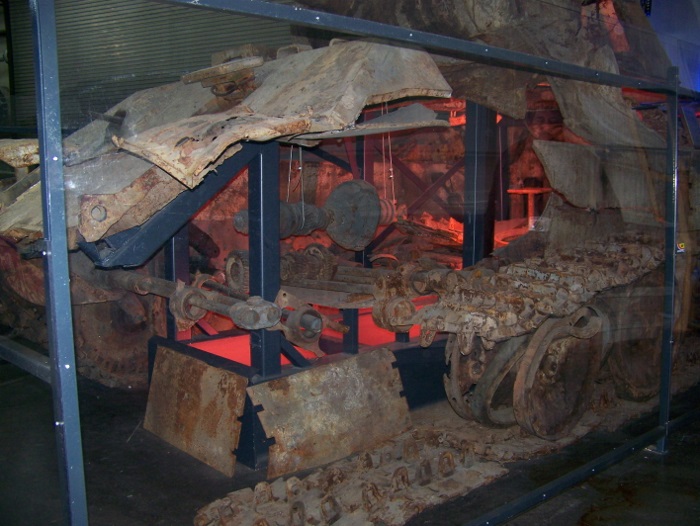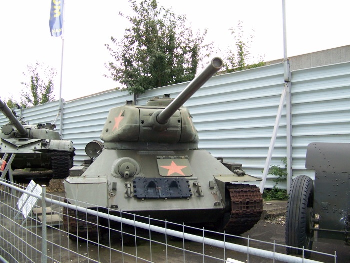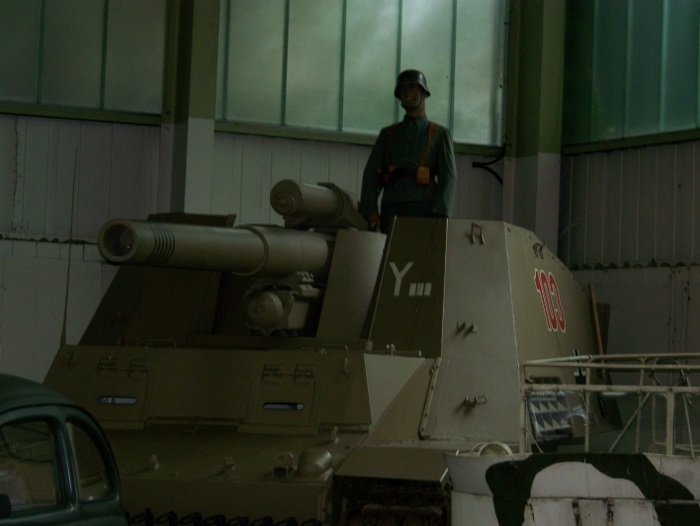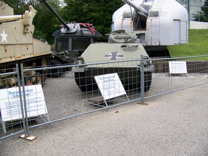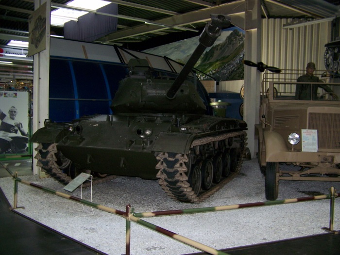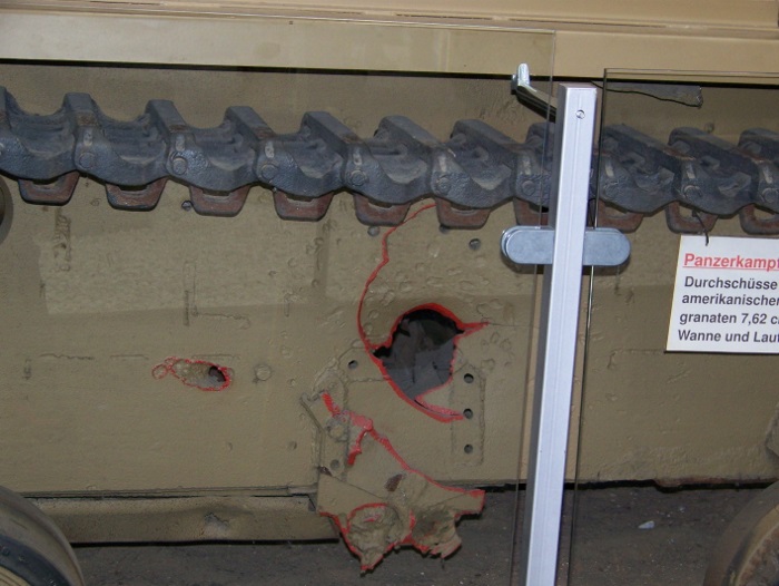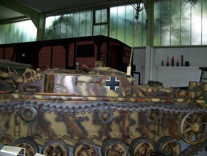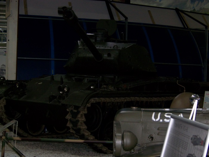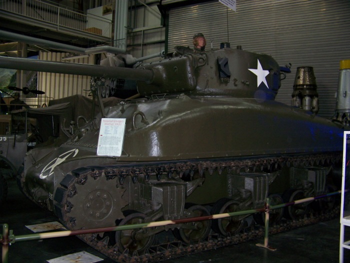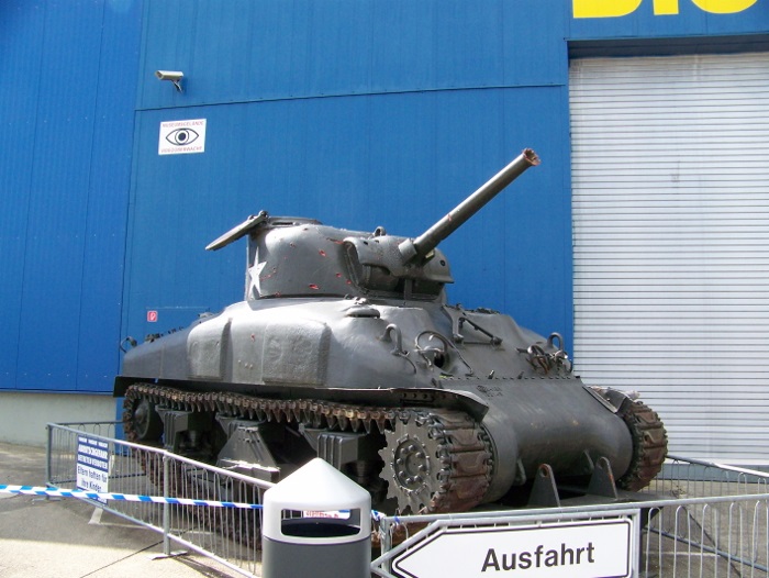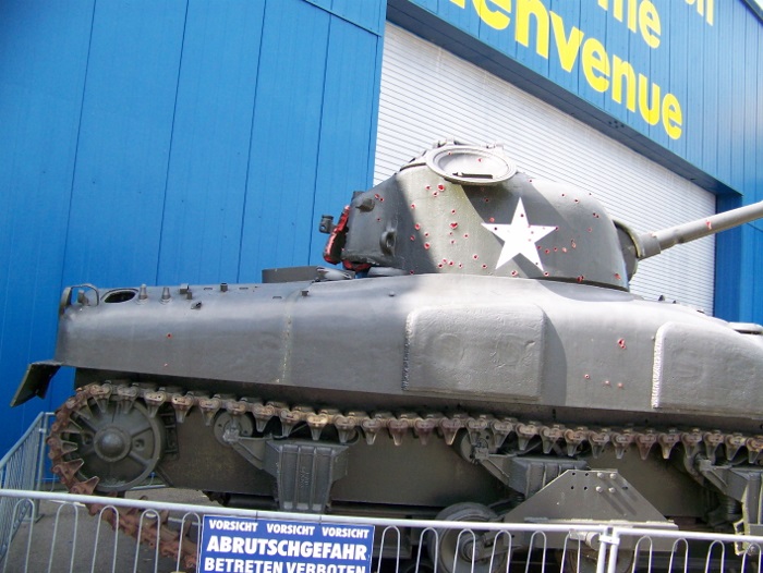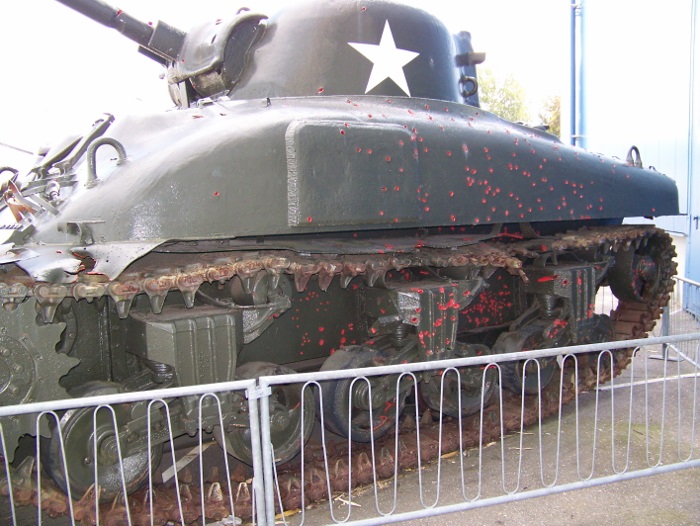 This shot up Sherman was sitting outside the front door. All the red marks are bullet or shrapnel holes.