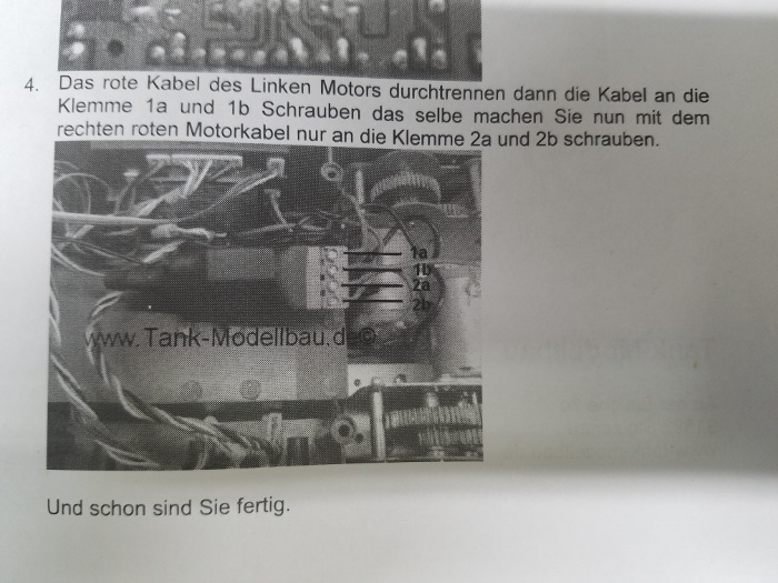 That's all I could glean from the pic you posted, Steve. I noted that it was page 3 of three, so I've no idea what was written on the other two.Norton1 wrote:4. Cut the red cable from the left motor, and the same for terminals 1a and 1b screws and now the same with the red right hand terminals screws 2a and 2b.