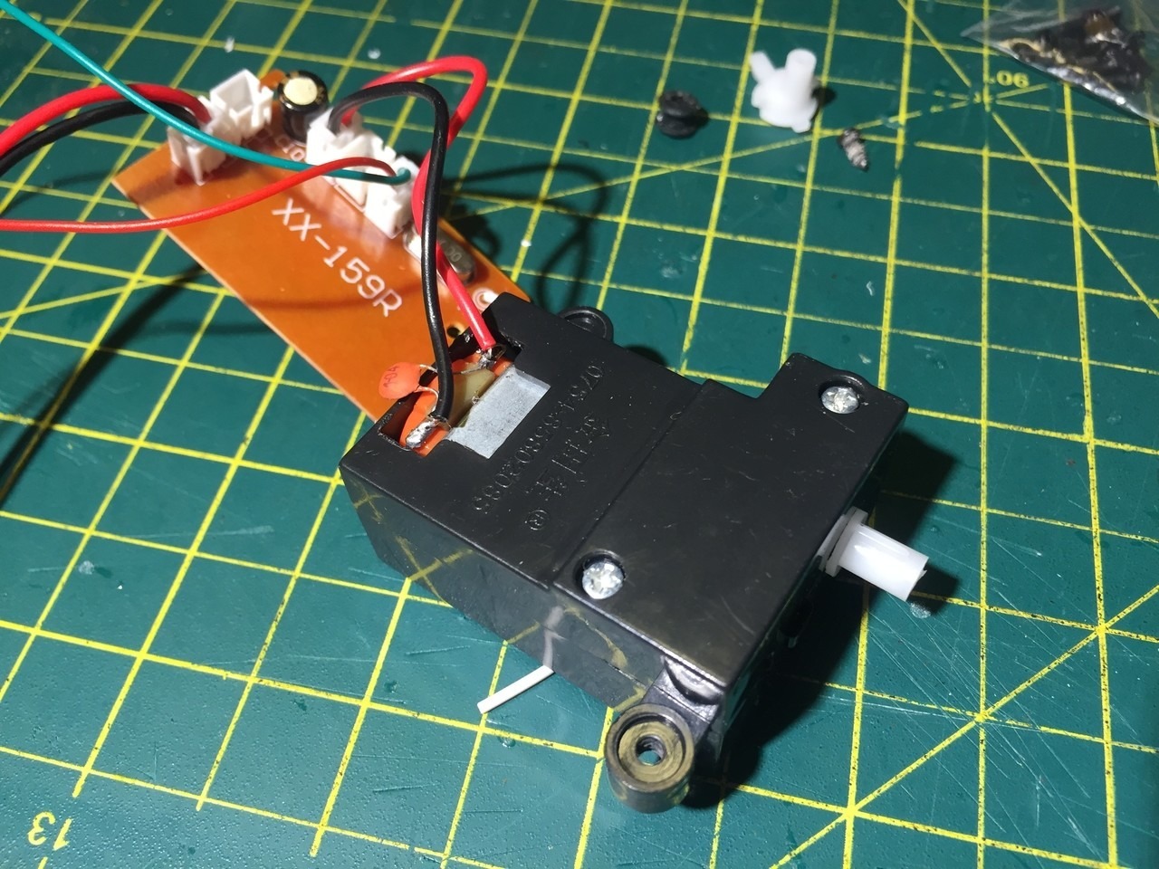 This unit, not sure how it is called, that is used for steer the truck need to be replaced by a servo. It makes at terrible racket and provide very limited control.
